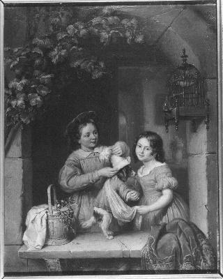 "In een deftig vertrek bij lamplicht, luistert een b...