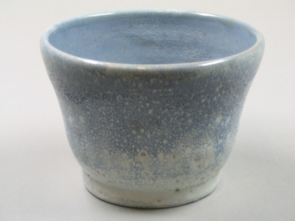kom van keramiek, grijsblauw in vlekken van bovenaf ...