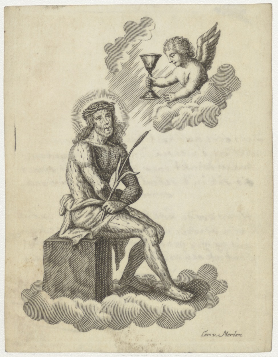 Gemartelede Christus ontvangt H. Sacrament van engel...