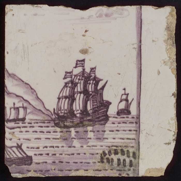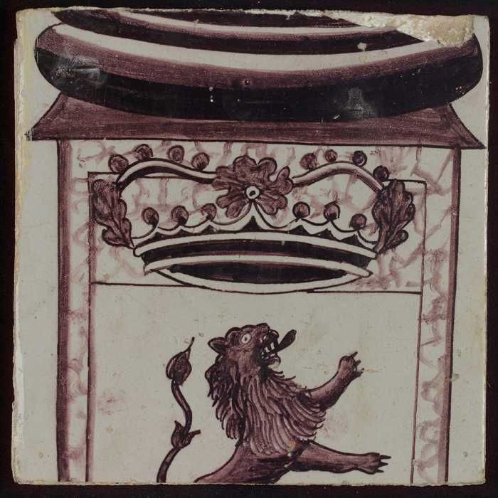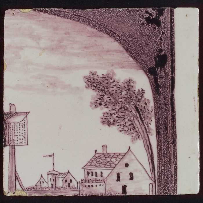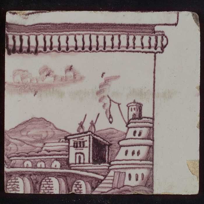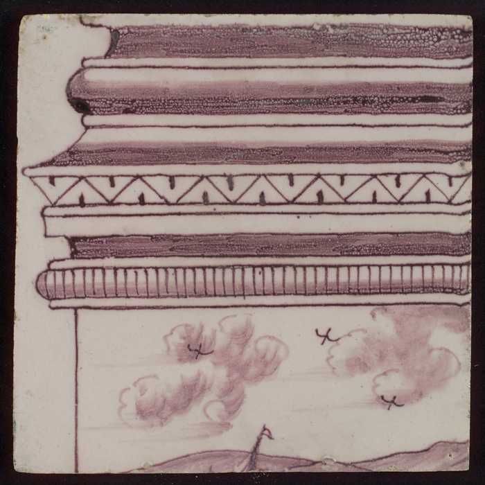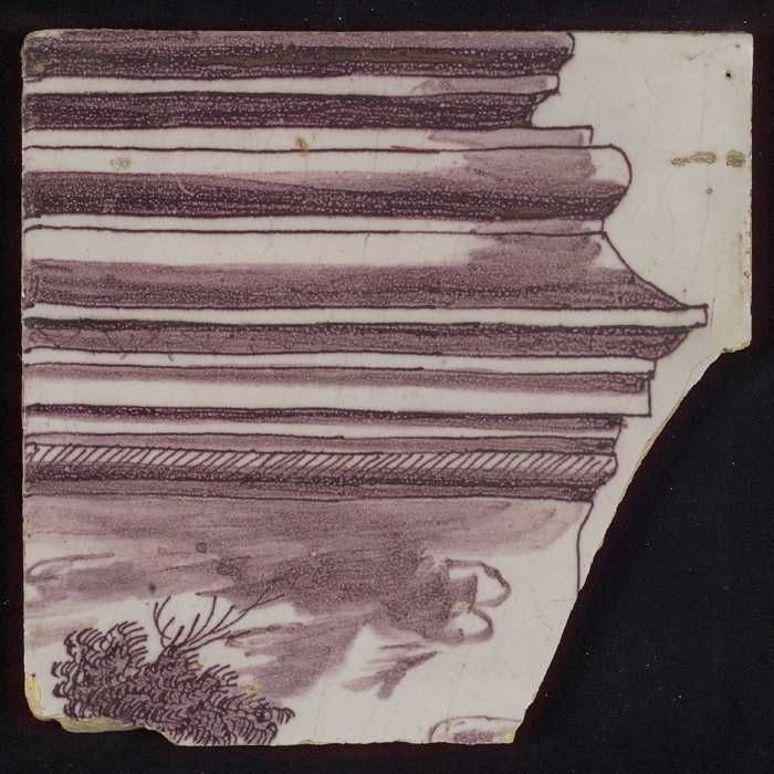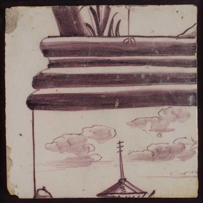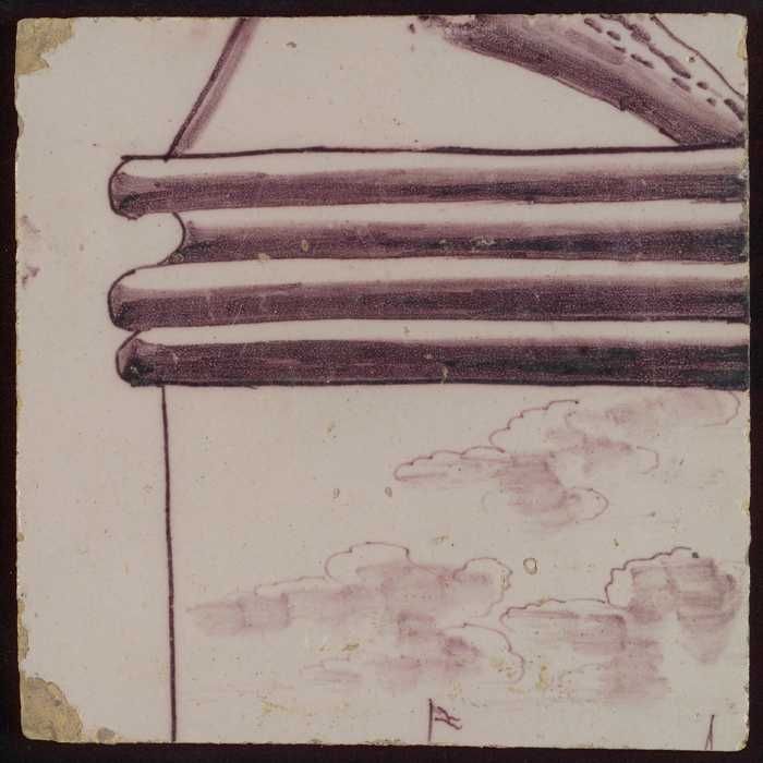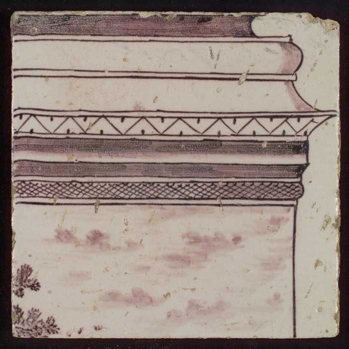 Tegel van paarse pilaster met deel van ingekleurd ba...