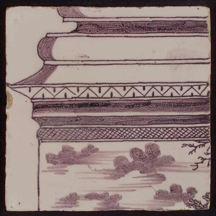 Tegel van paarse pilaster met deel van gedecoreerd b...