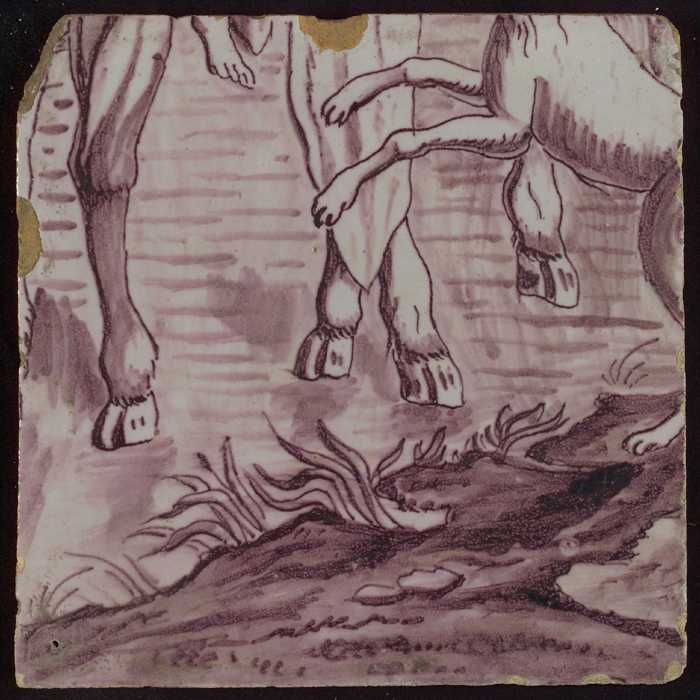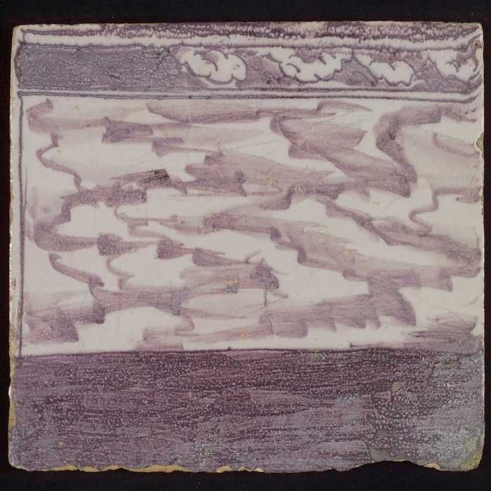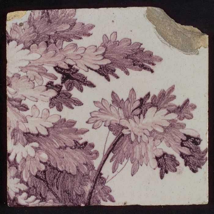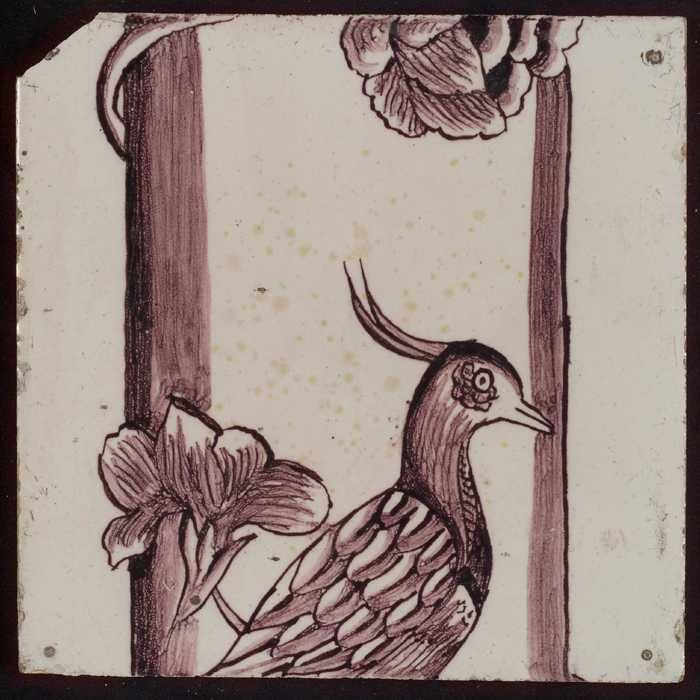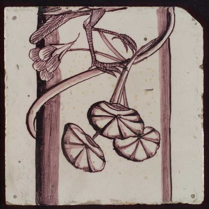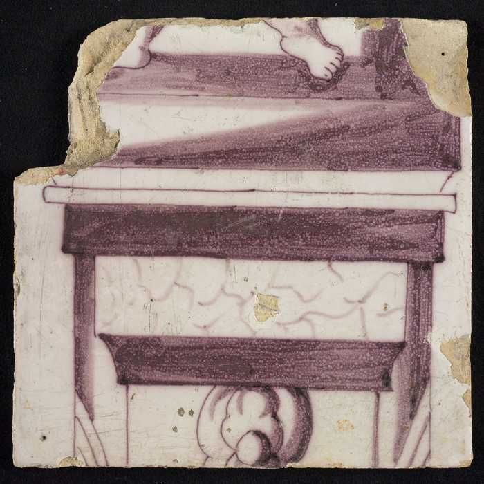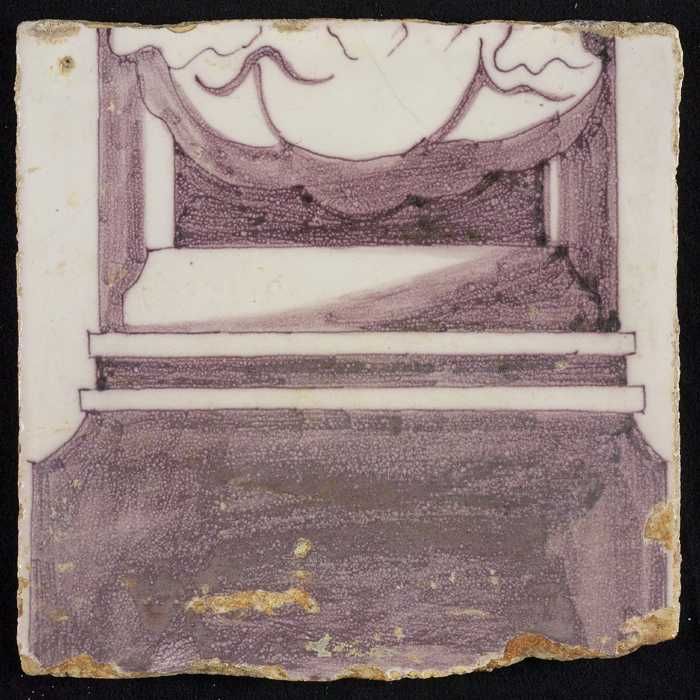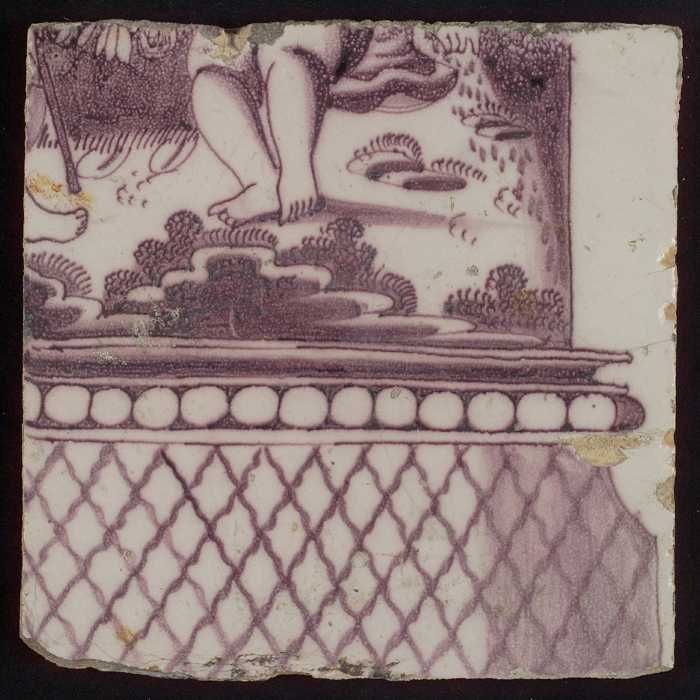 Losse tegel uit pilaster met decor in paars, sokkel ...