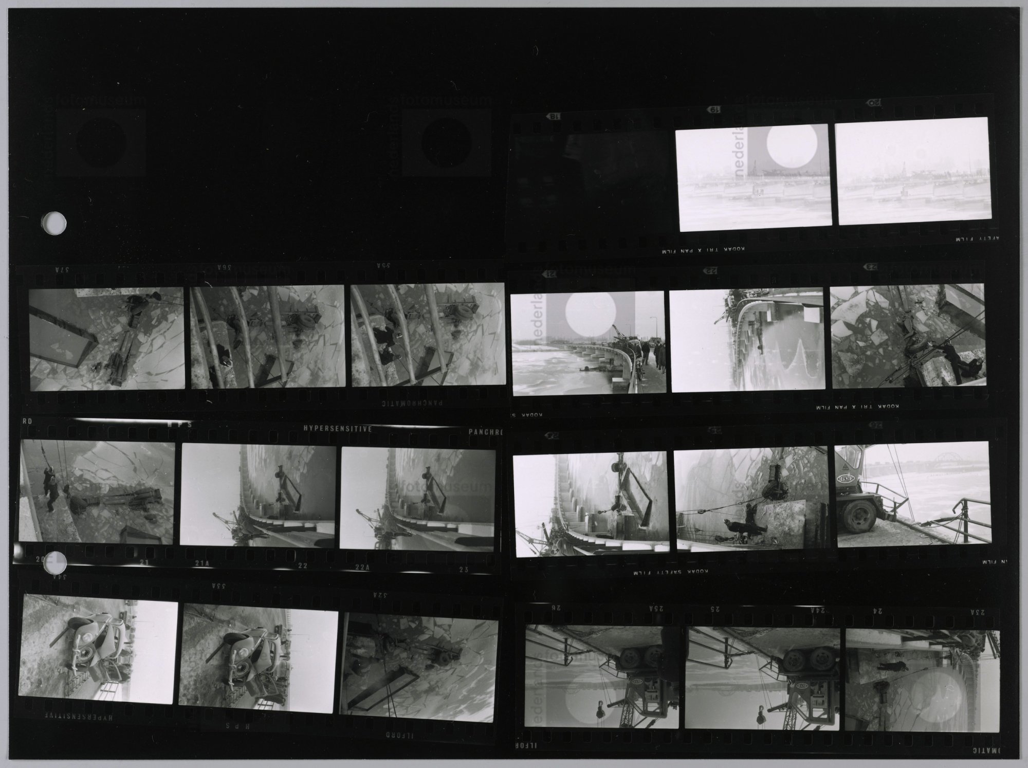 Amsterdam. Auto van Schellingwouderbrug gereden, Bui...