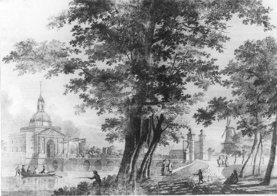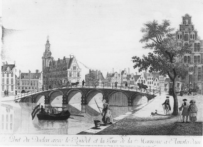 "Le pont du doelen, avec le rondel et la tour de la ...