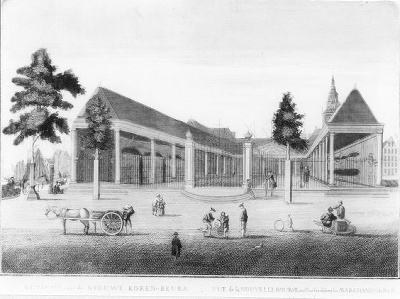 "Gezicht van de Nieuwe Koren-beurs, tot Amsterdam"