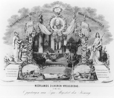 "Neêrlands zilveren vreugedag (12 mei 1874) (Prent g...