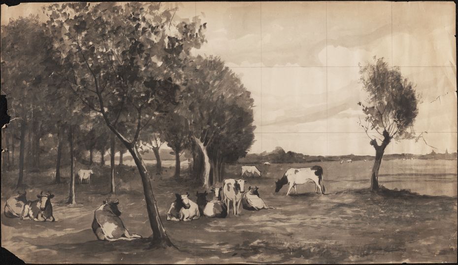 1 ontwerptekening voor een tegeltableau met tafereel...