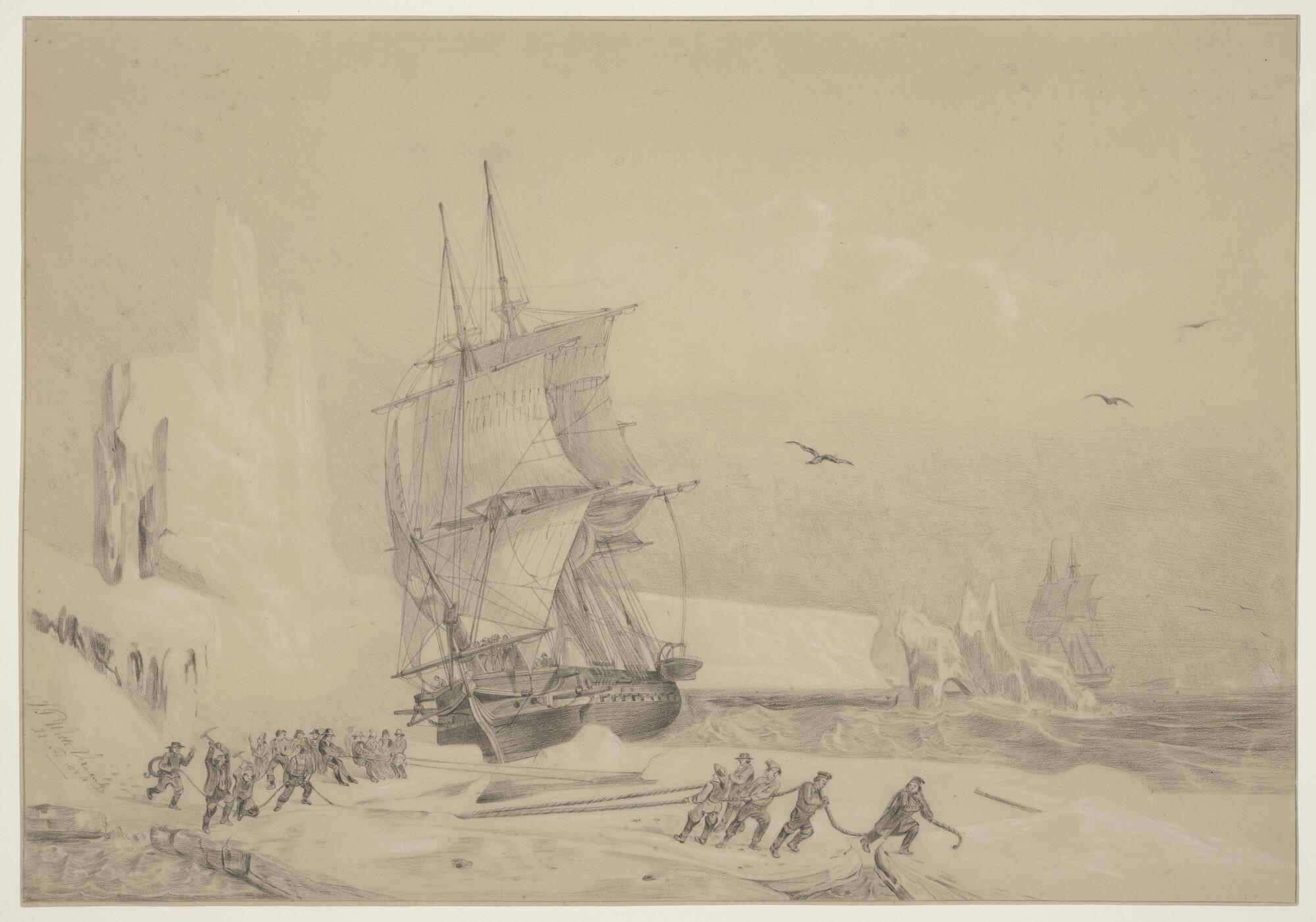 Een oorlogsfregat in het ijs