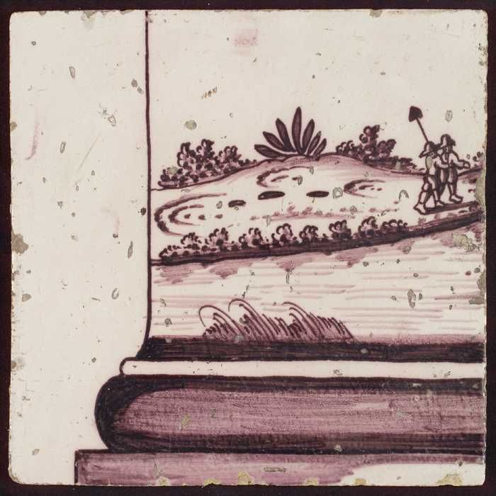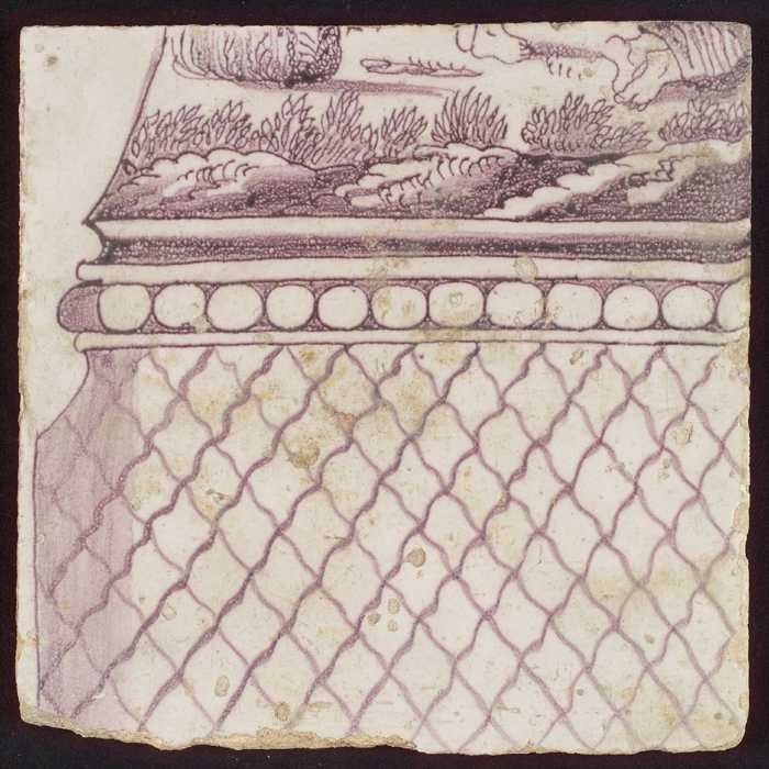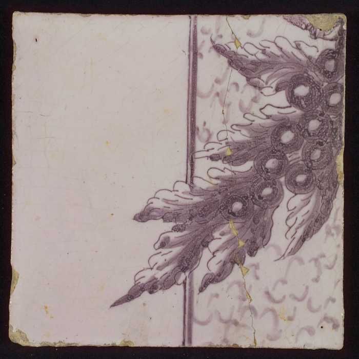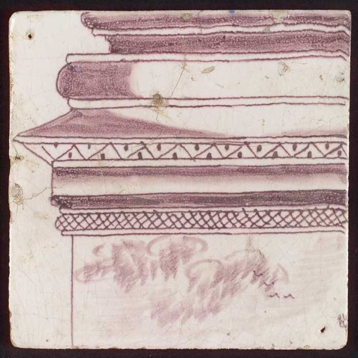 Drie tegels van paarse pilaster met gemarmerde kolom...