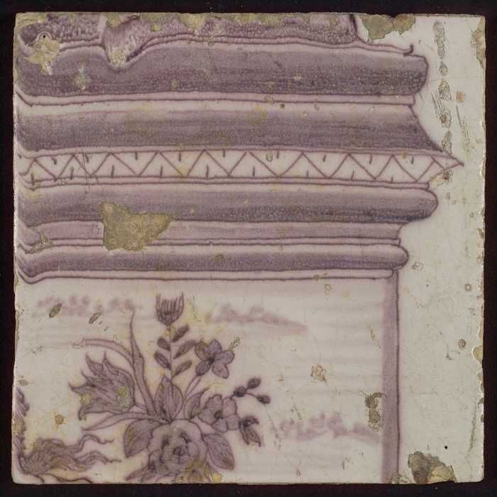 Tegel van paars tegelpilaster met gedecoreerde korin...