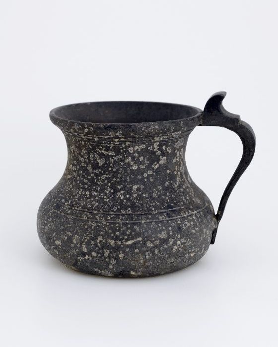 Tinnen kamerpot met naar beneden uitgezakte buik en ...