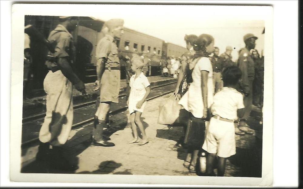 opschrift: "Aankomst van de evacuees uit het Republi...