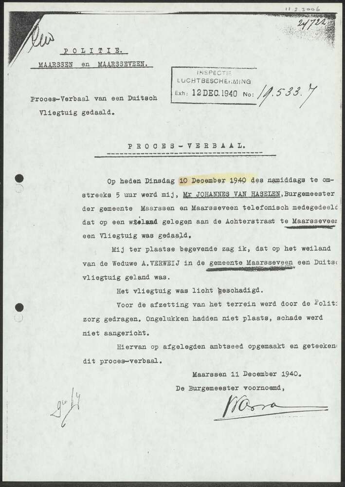 Proces-Verbaal van Politie Maarssen en Maarsseveen a...