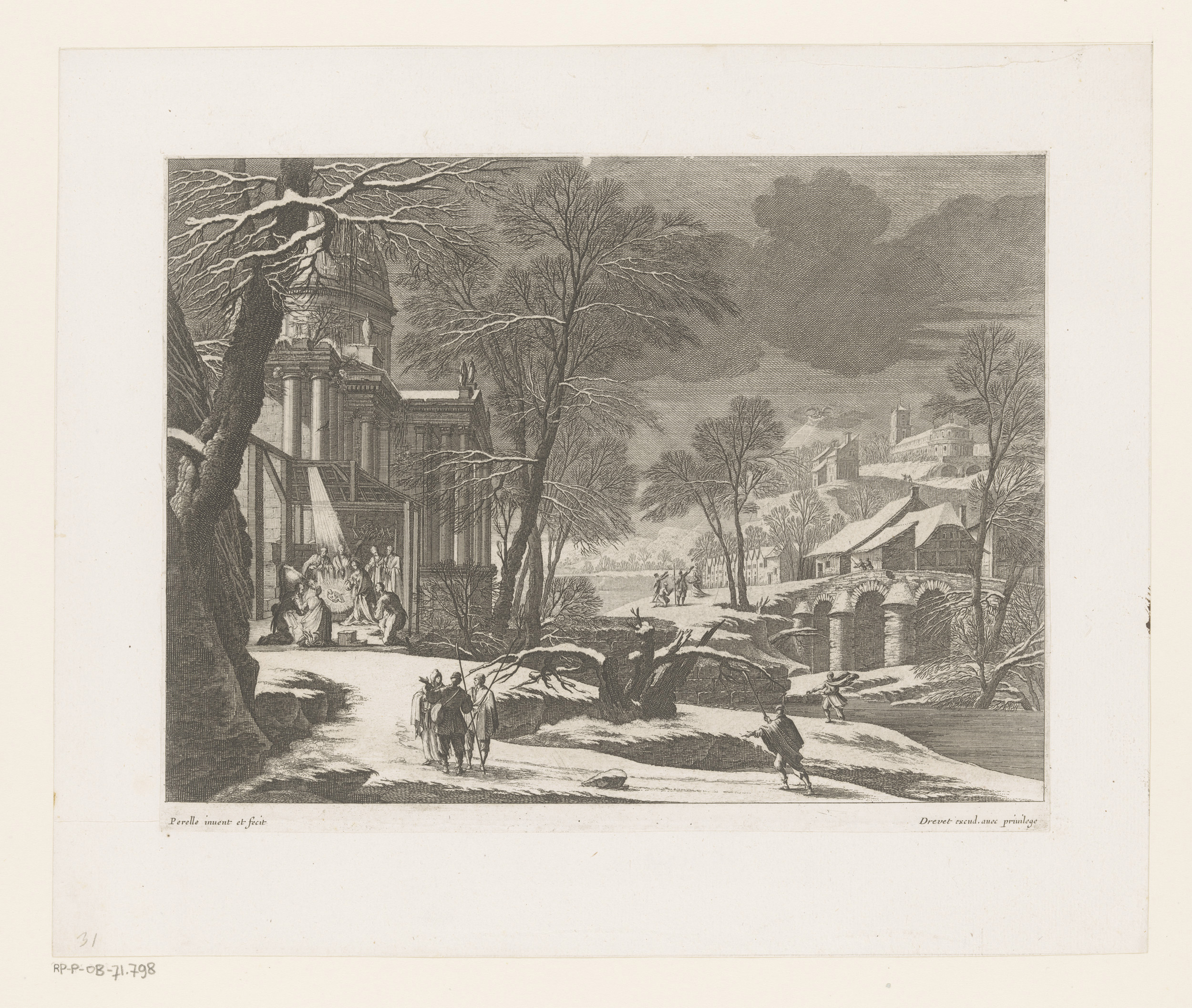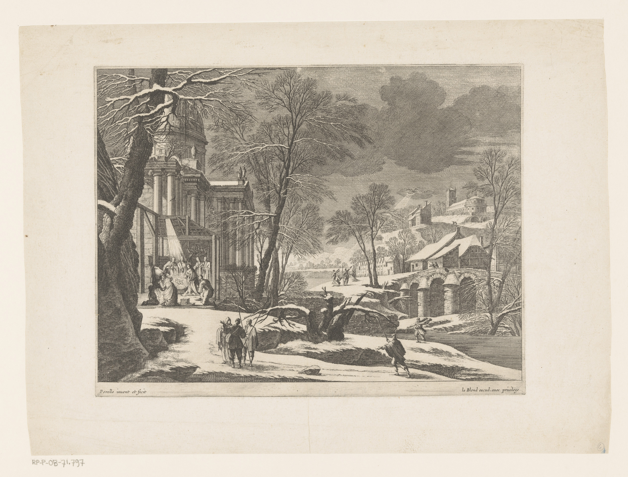 Winterlandschap met geboorte van Christus