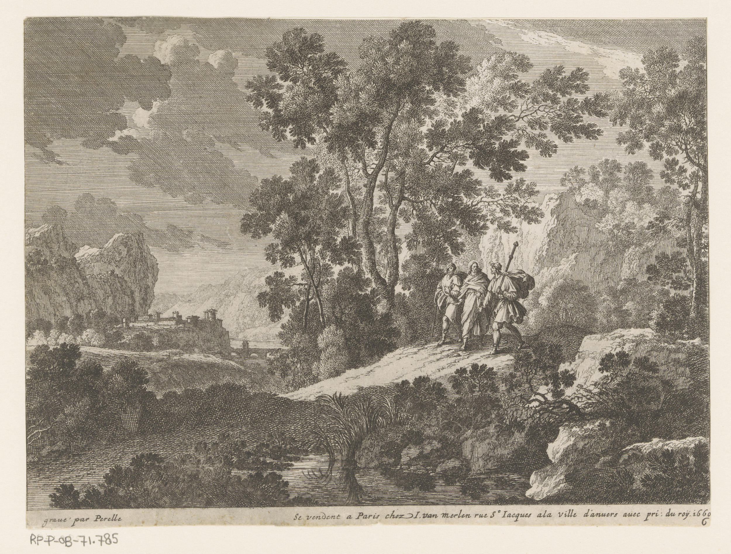 Landschap met reizigers en Heilige Familie