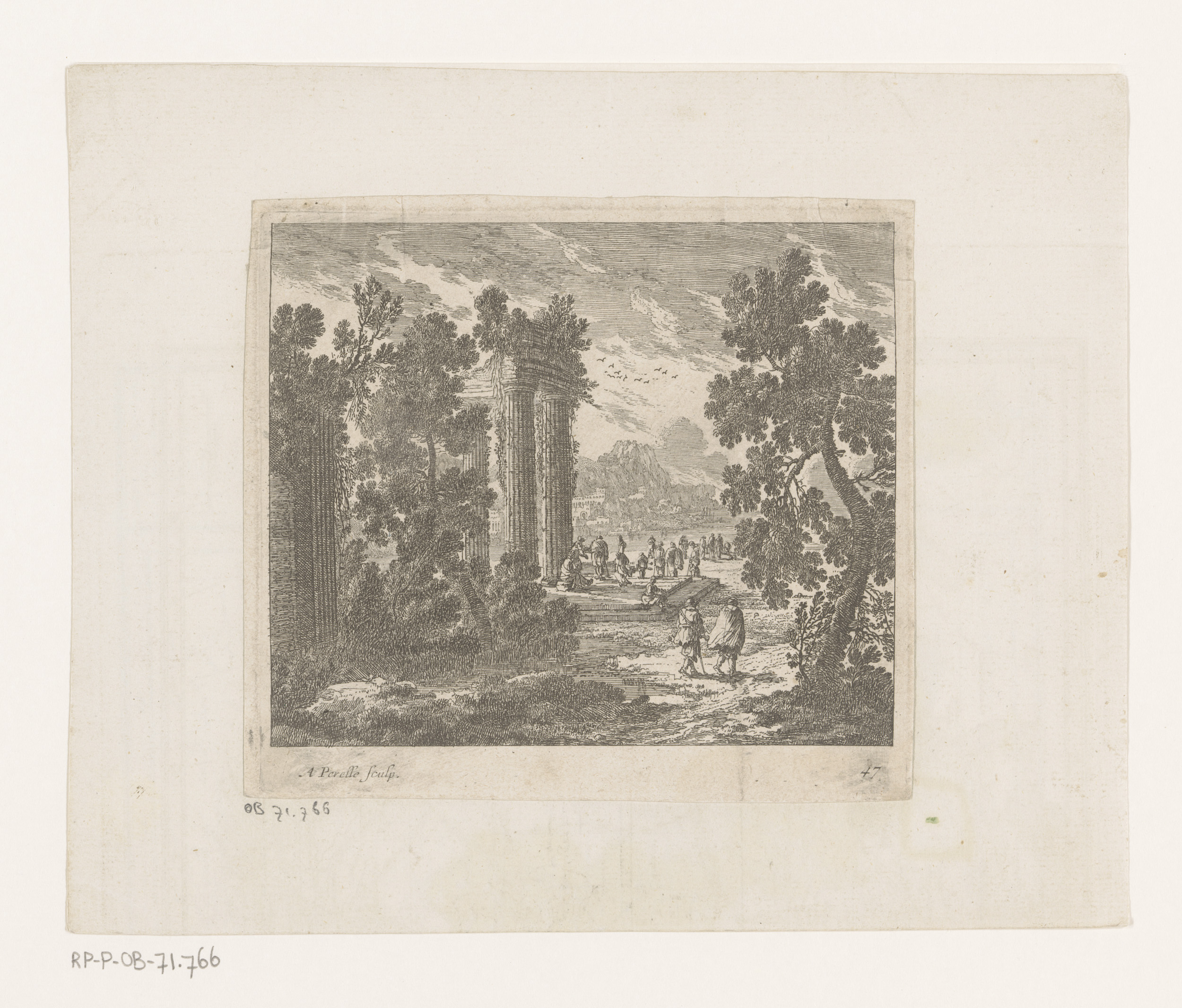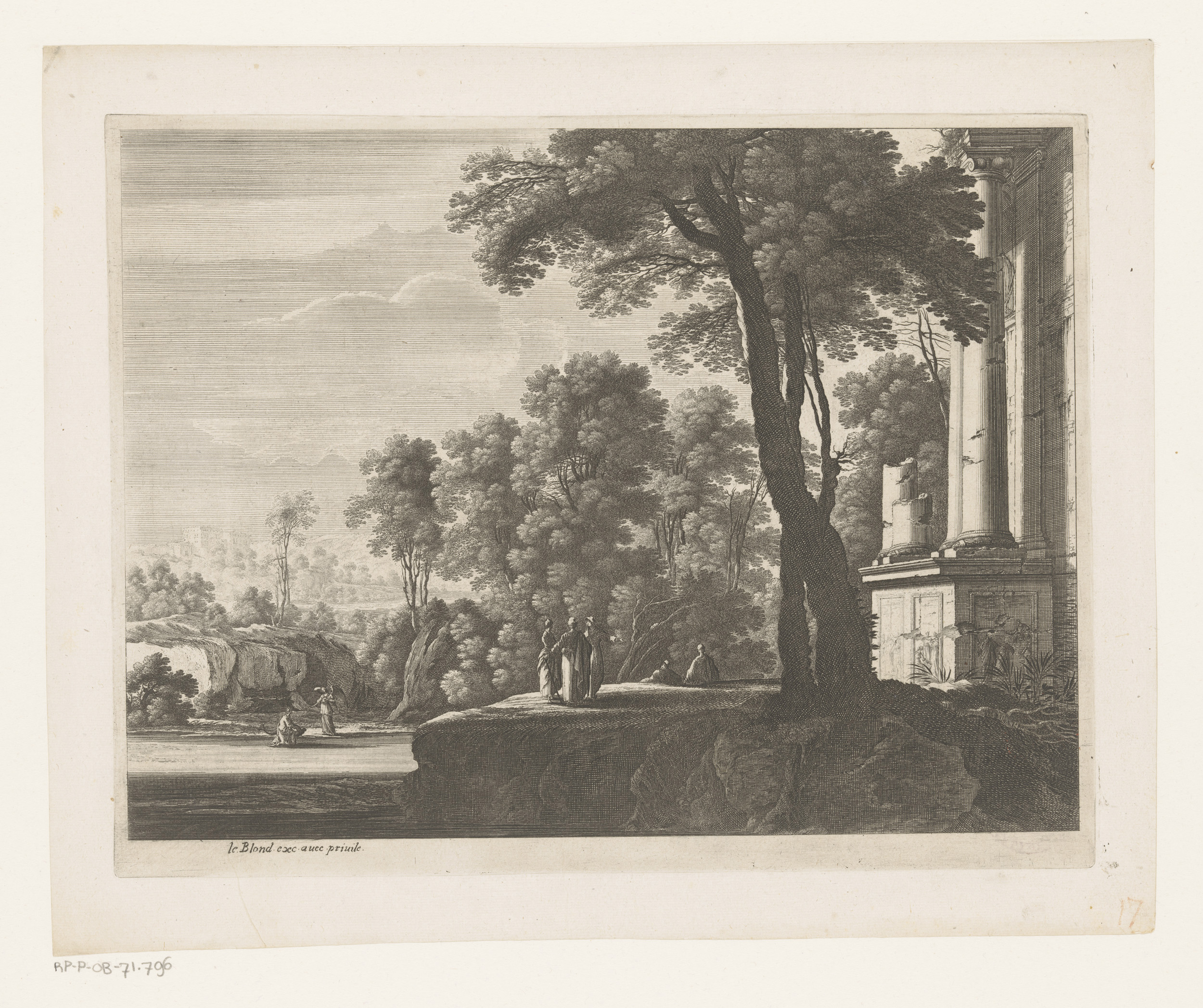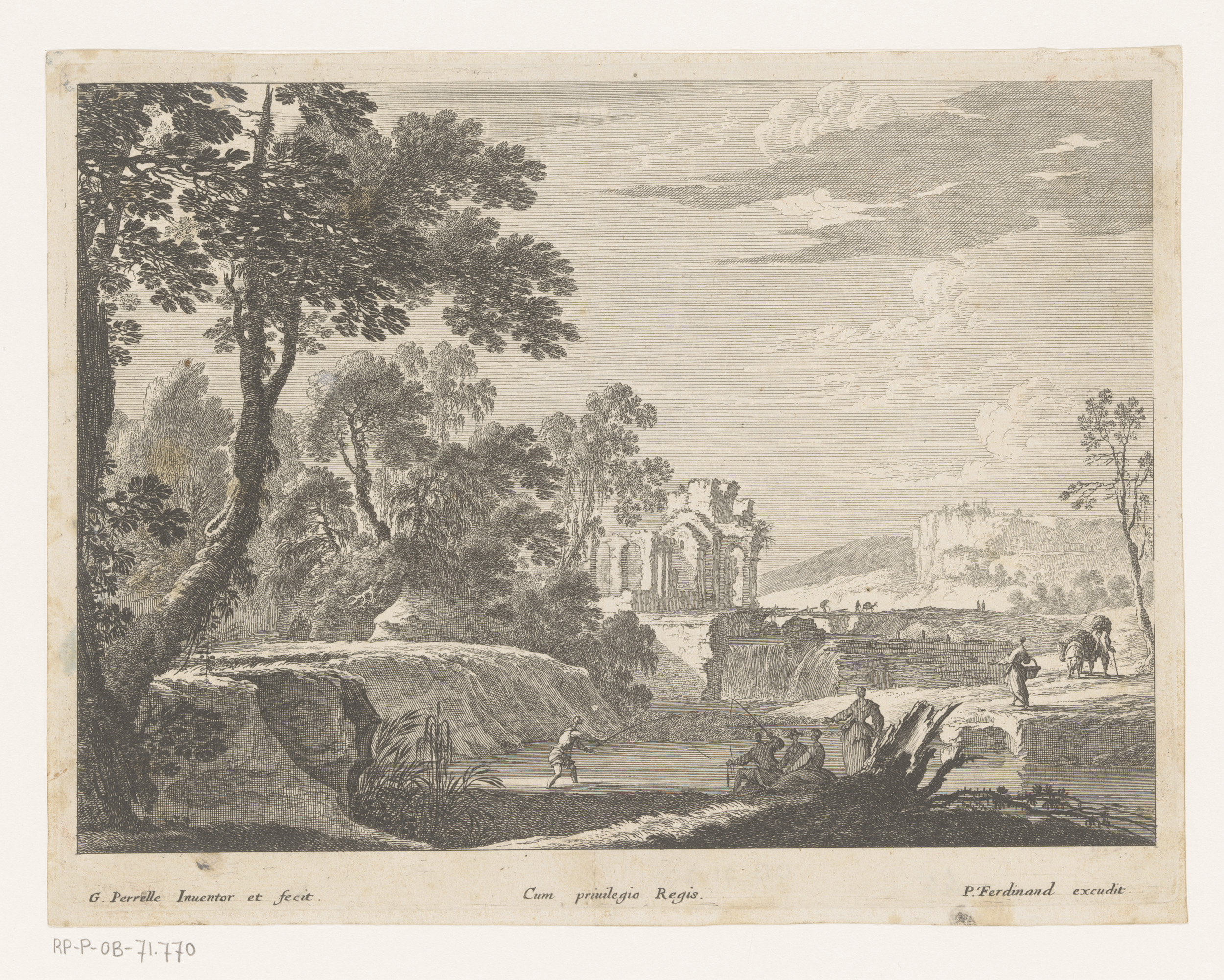 Landschap met ruïnes en vissers