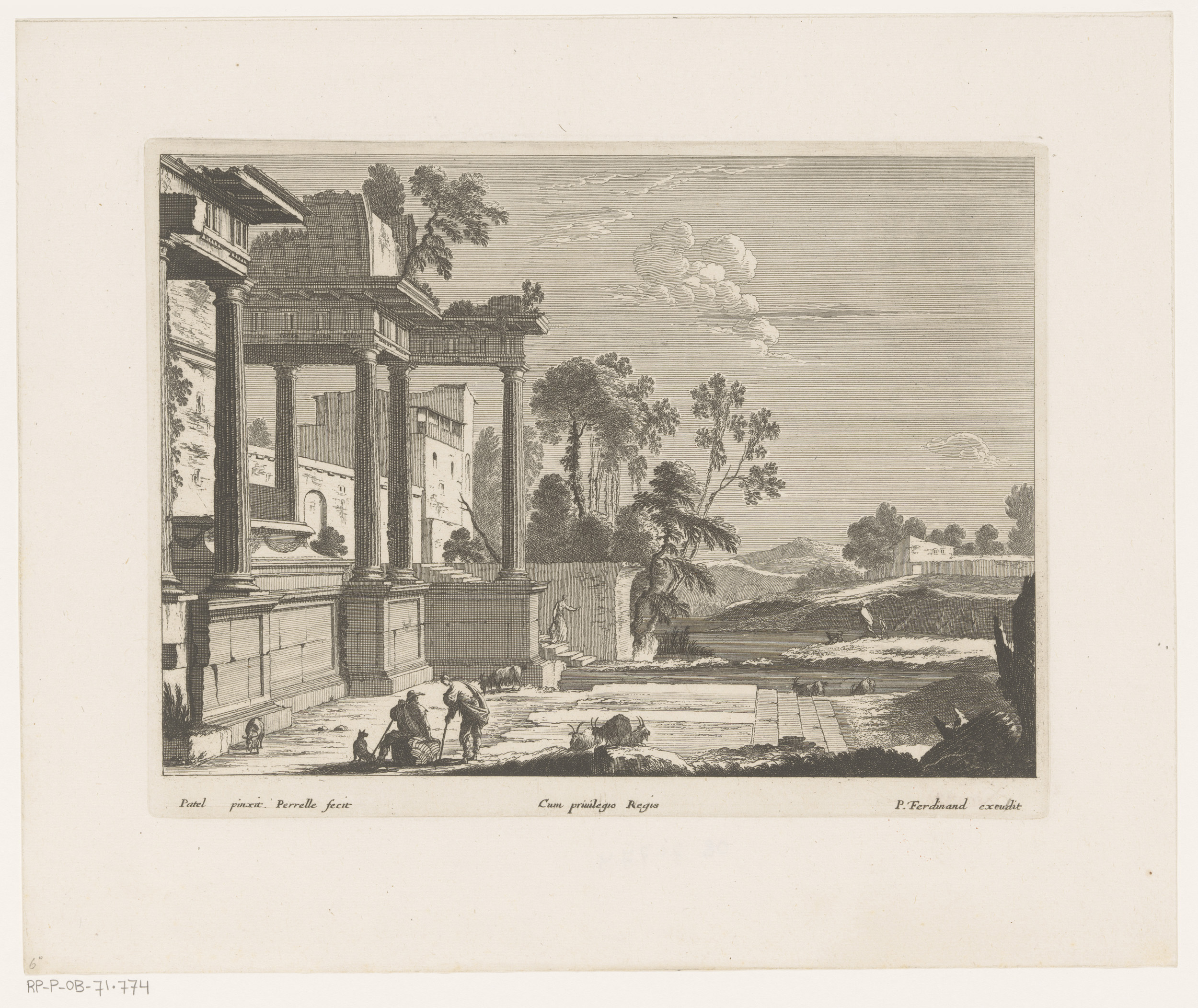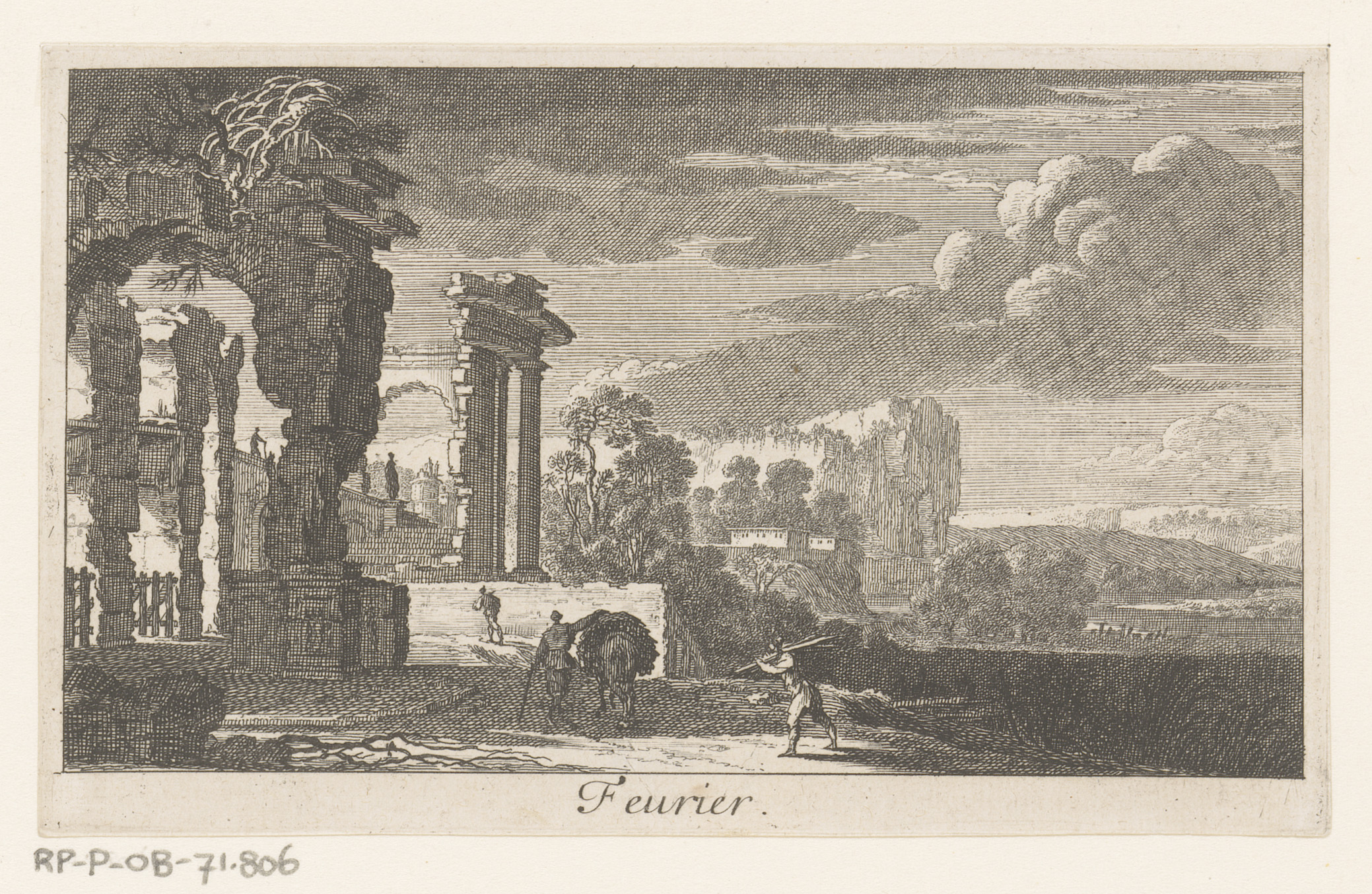 Landschap met ruïnes en koeherders