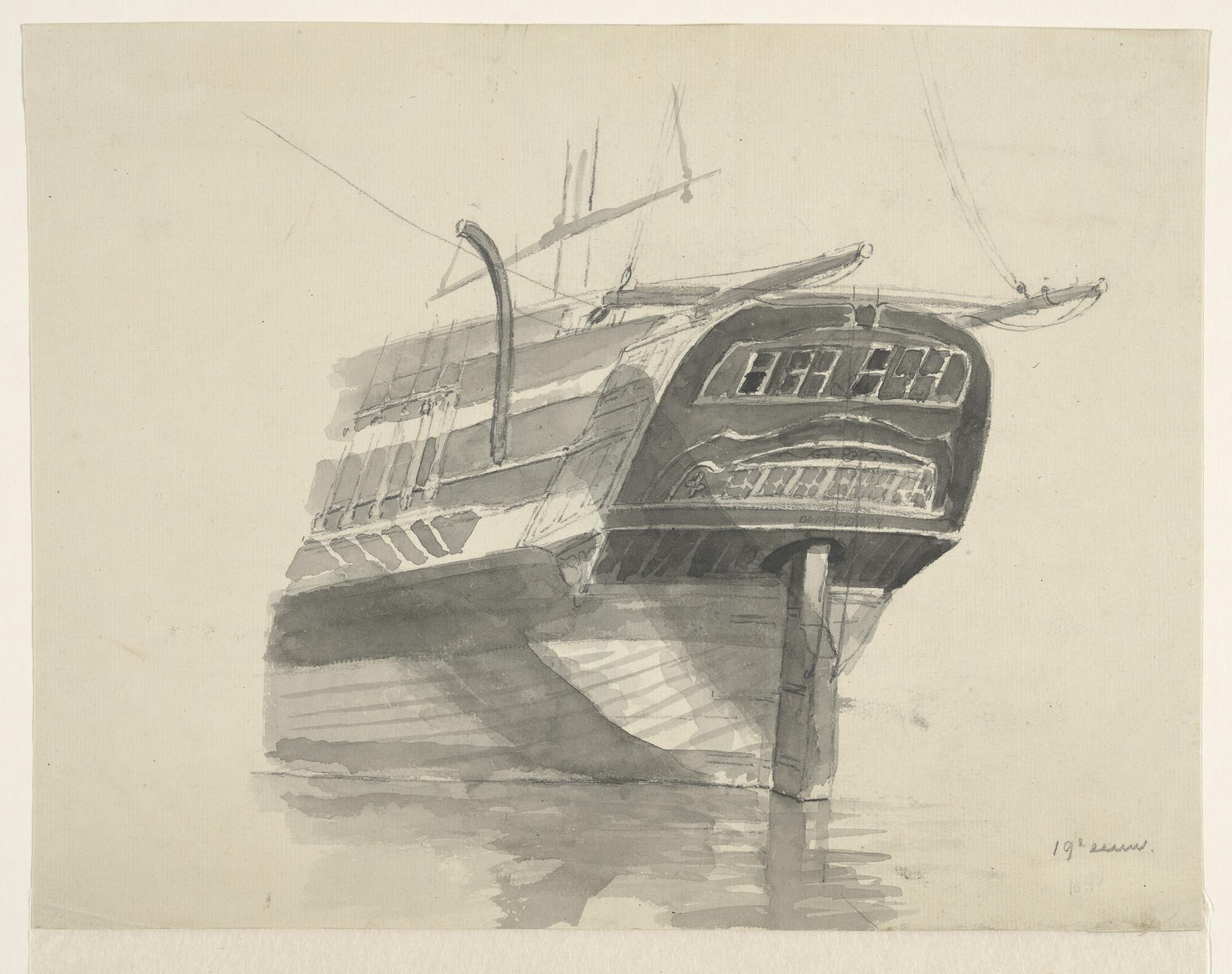 Het achterschip van een dwarsgetuigd schip