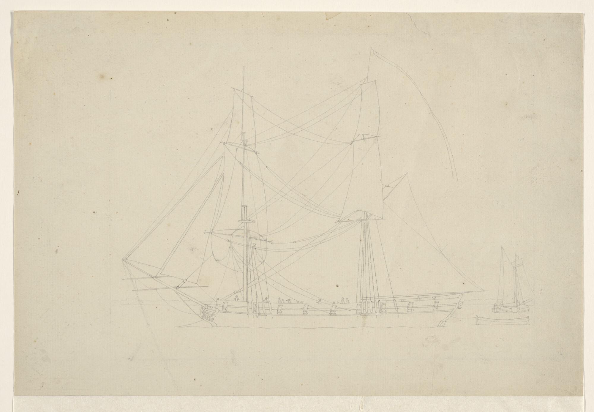 Prent van een schoener en een gaffel