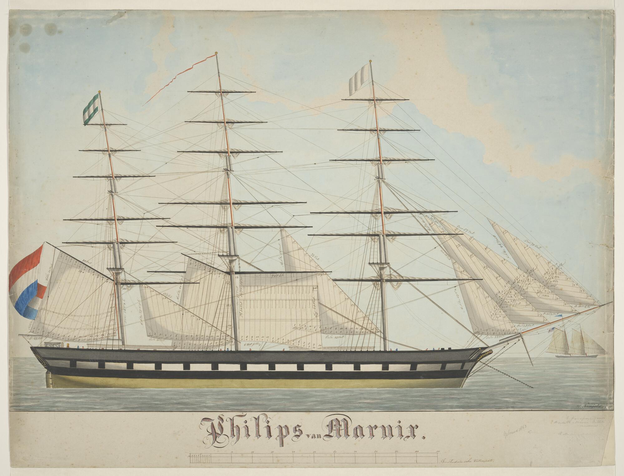 Tuigtekening van het fregatschip 'Philips van Marnix'
