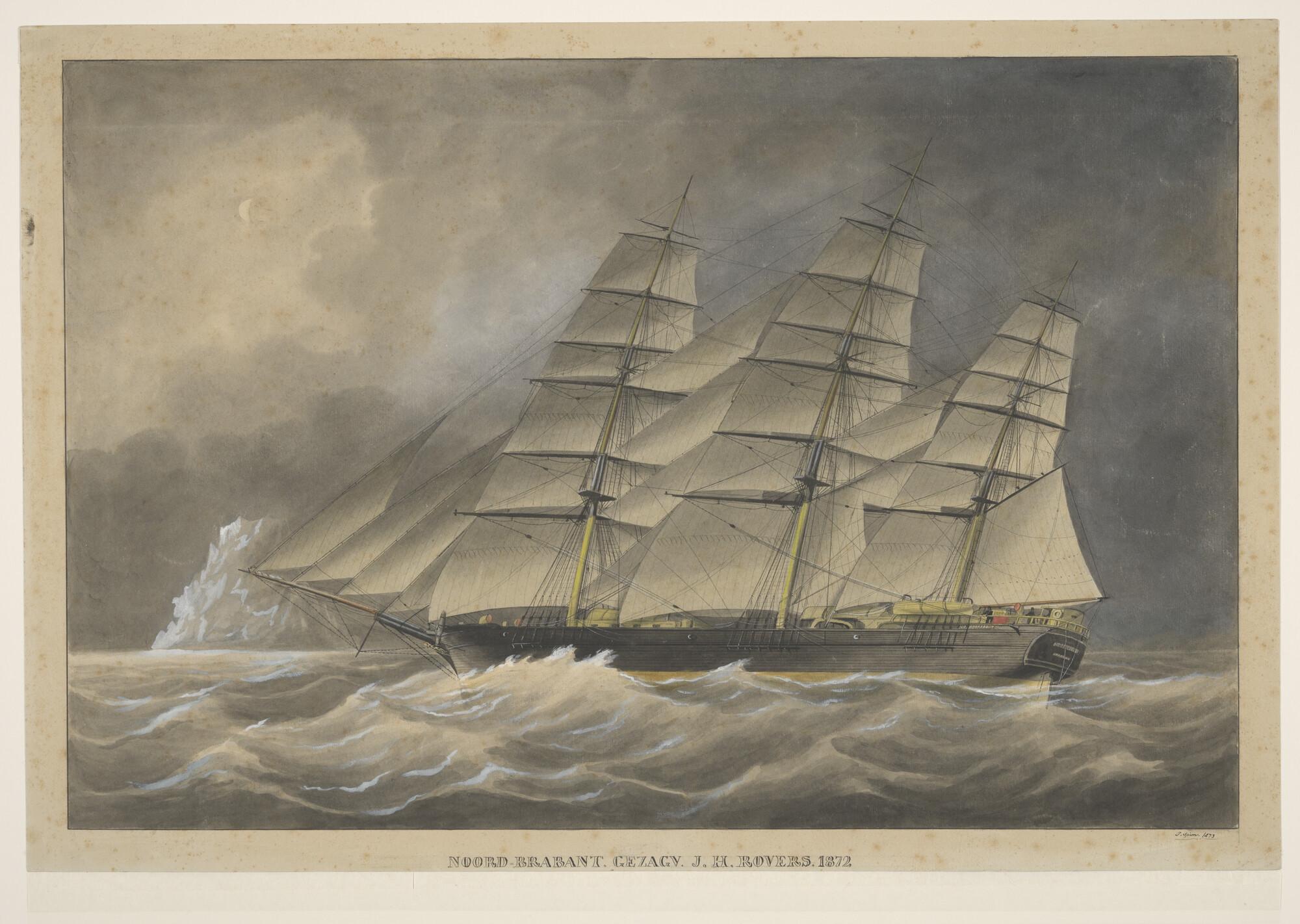 Aquarel van een klipperfregat Noord-Brabant