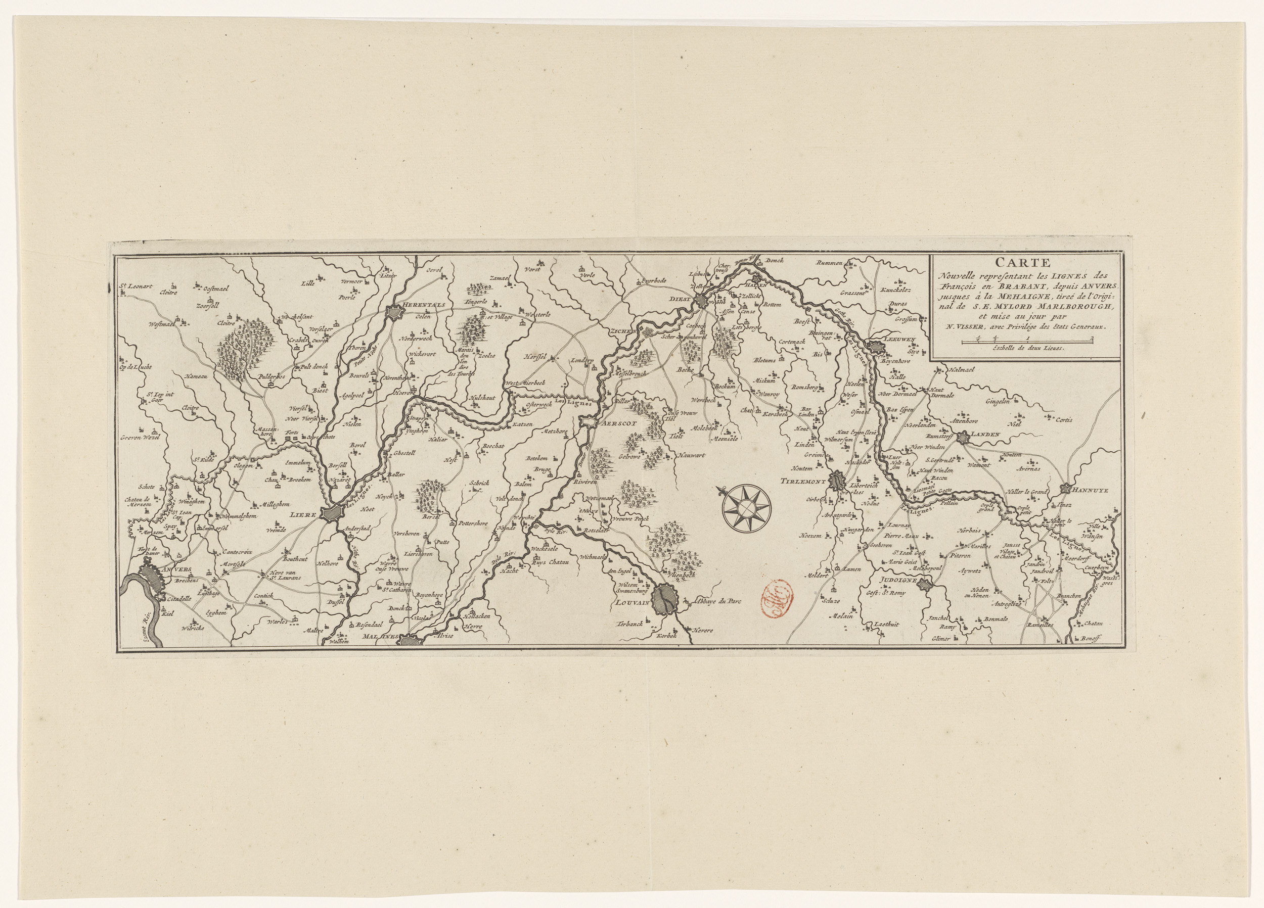 Kaart van de Franse linies in Brabant, ca. 1705