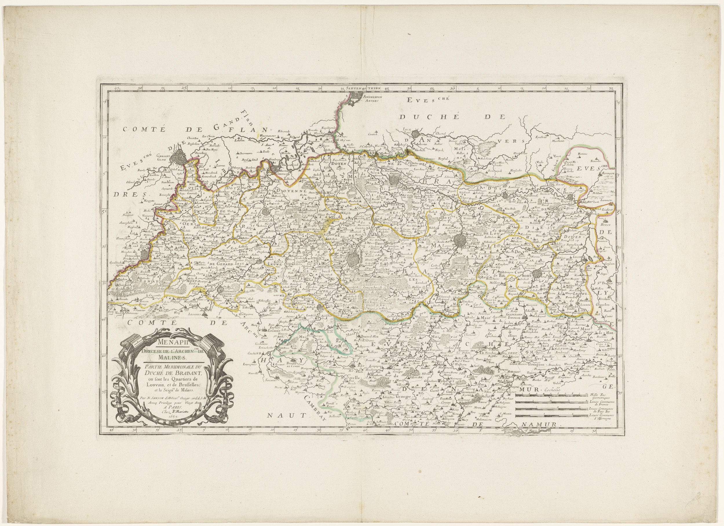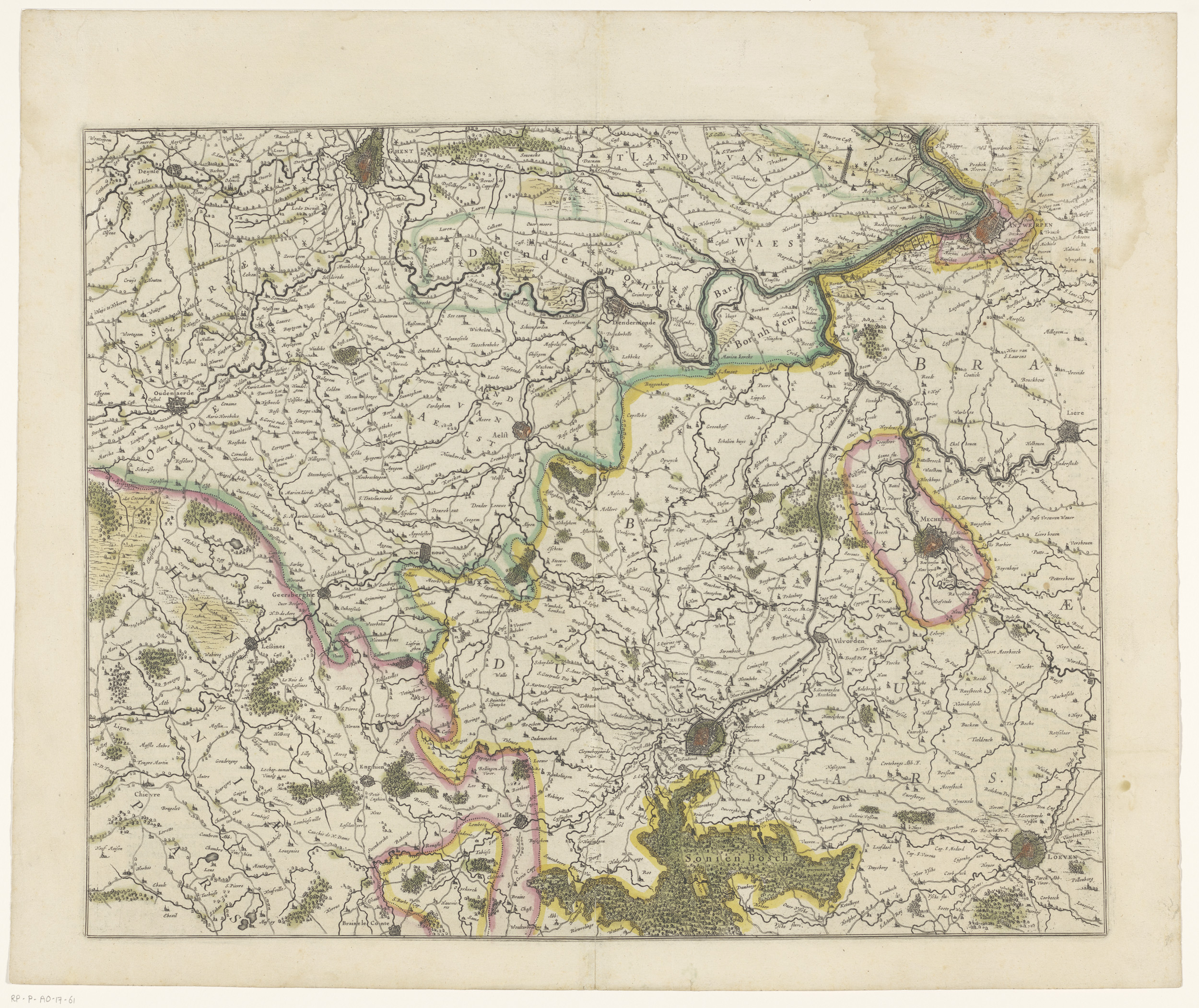 Kaart van het zuidelijk deel van het hertogdom Brabant