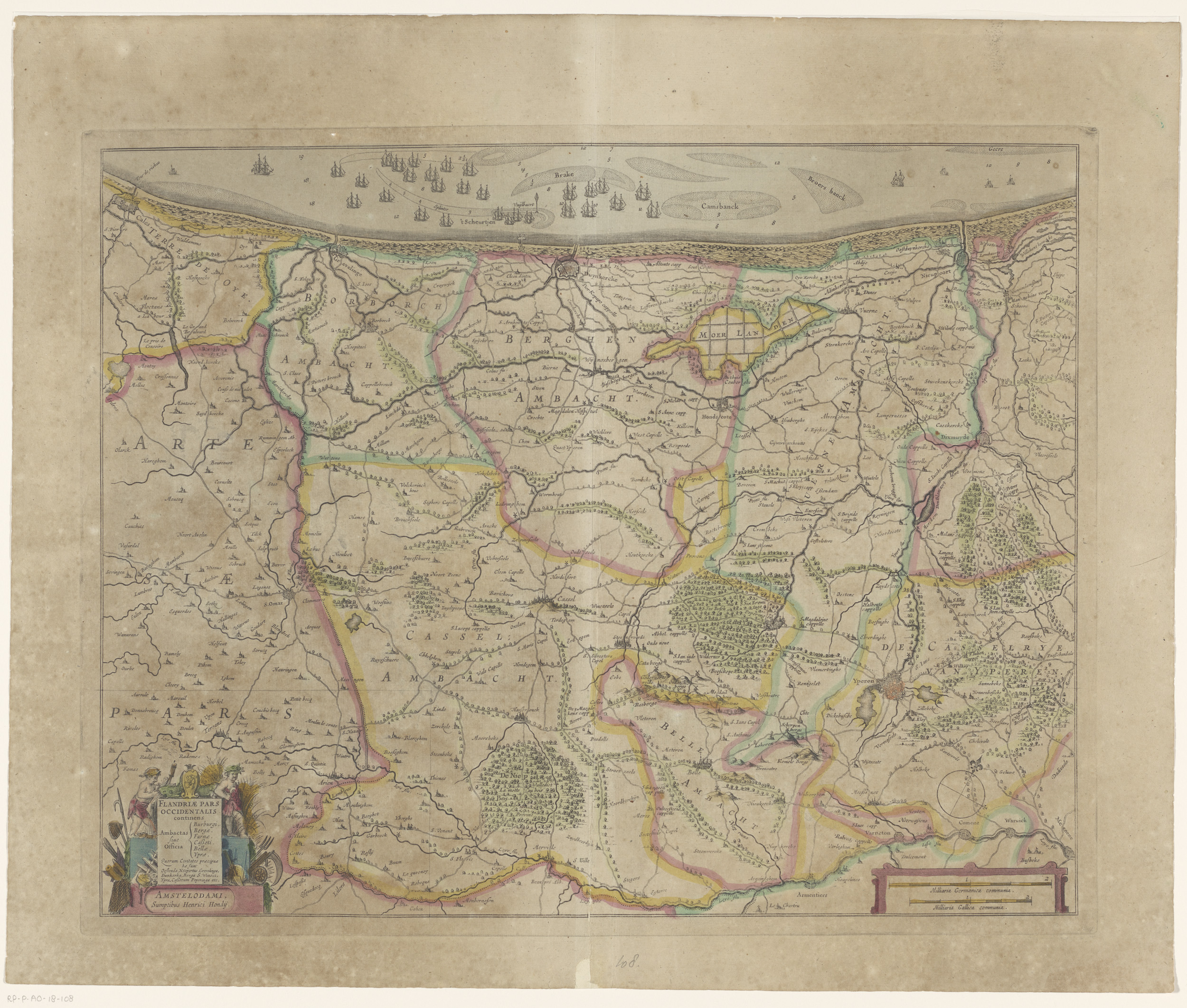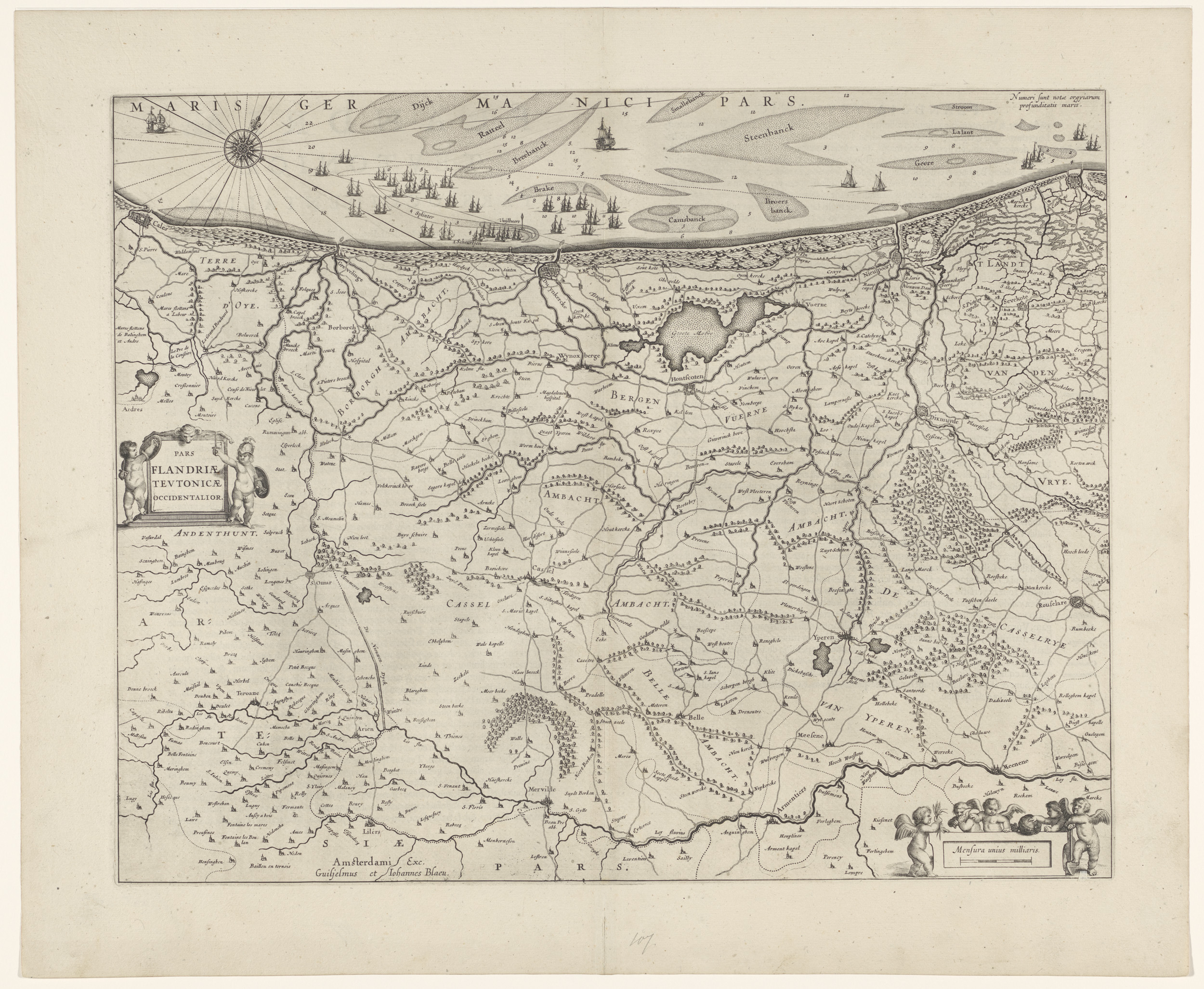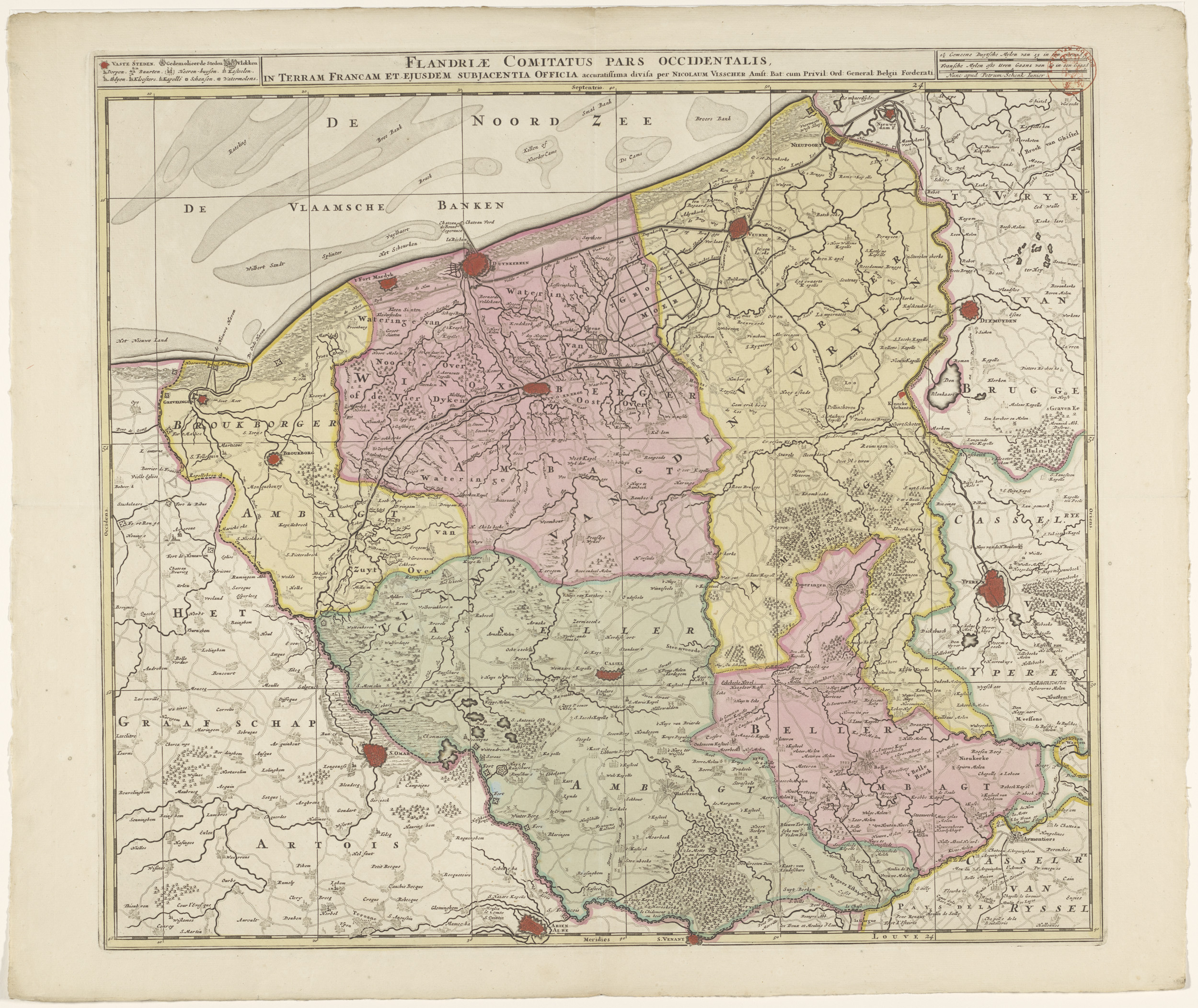 Kaart van het westelijk deel van Vlaanderen