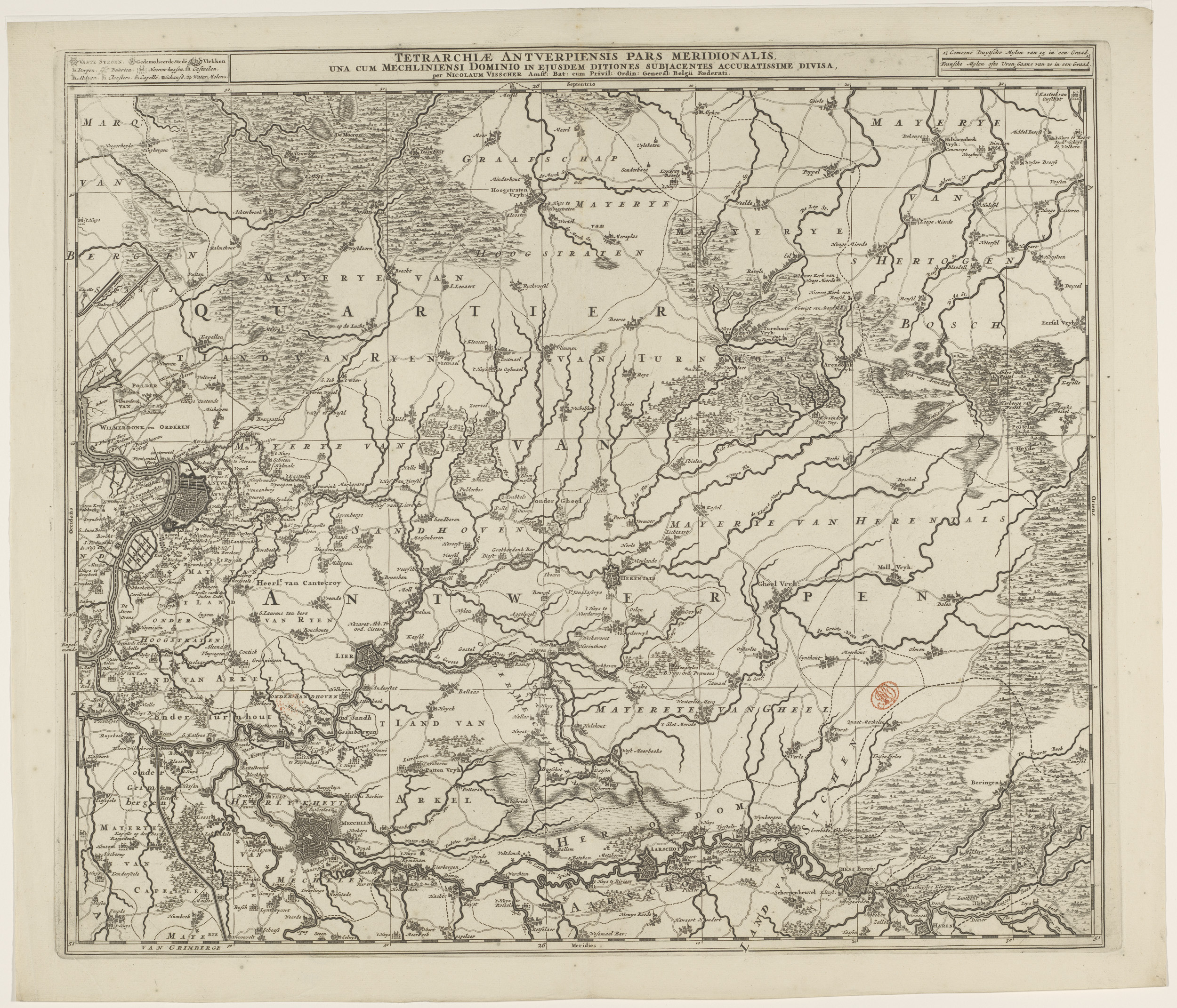 Kaart van het noordelijk deel van het hertogdom Brabant