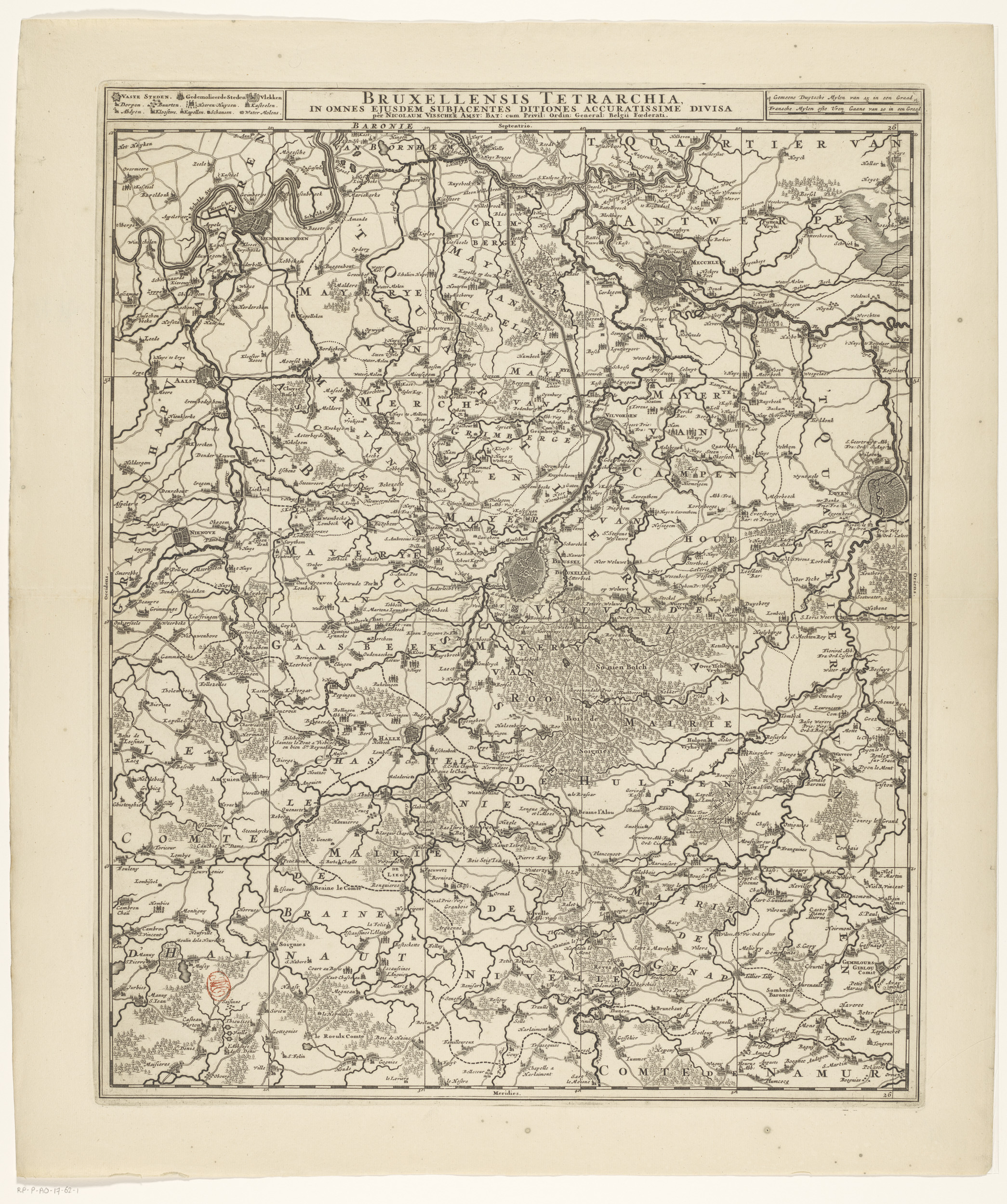 Kaart van de kwartieren van Brussel, Leuven en Antwe...