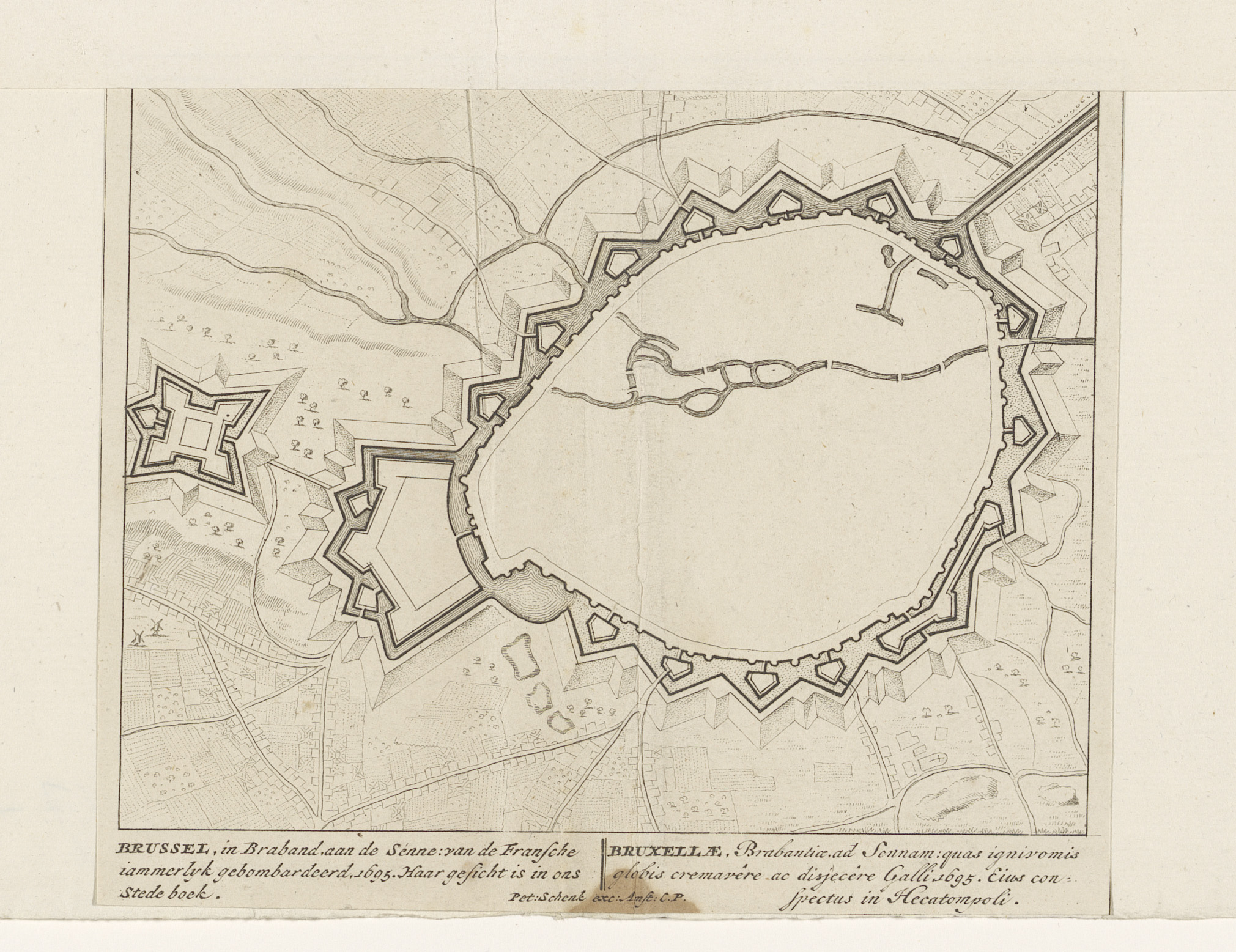 Vestingplattegrond van Brussel, gebombardeerd door h...