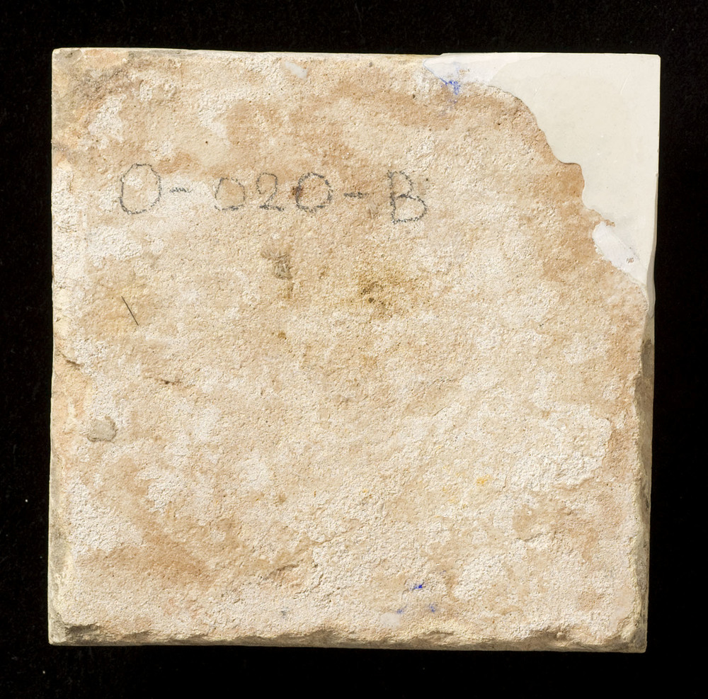 Tegel van keramiek met tinglazuur, voorstellende: No...