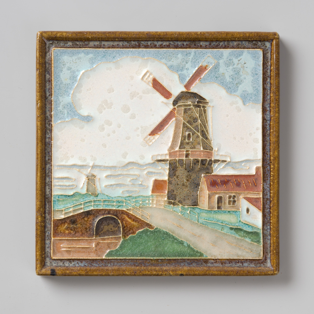 Tegel in cloisonné-techniek, met voorstelling: Koren...