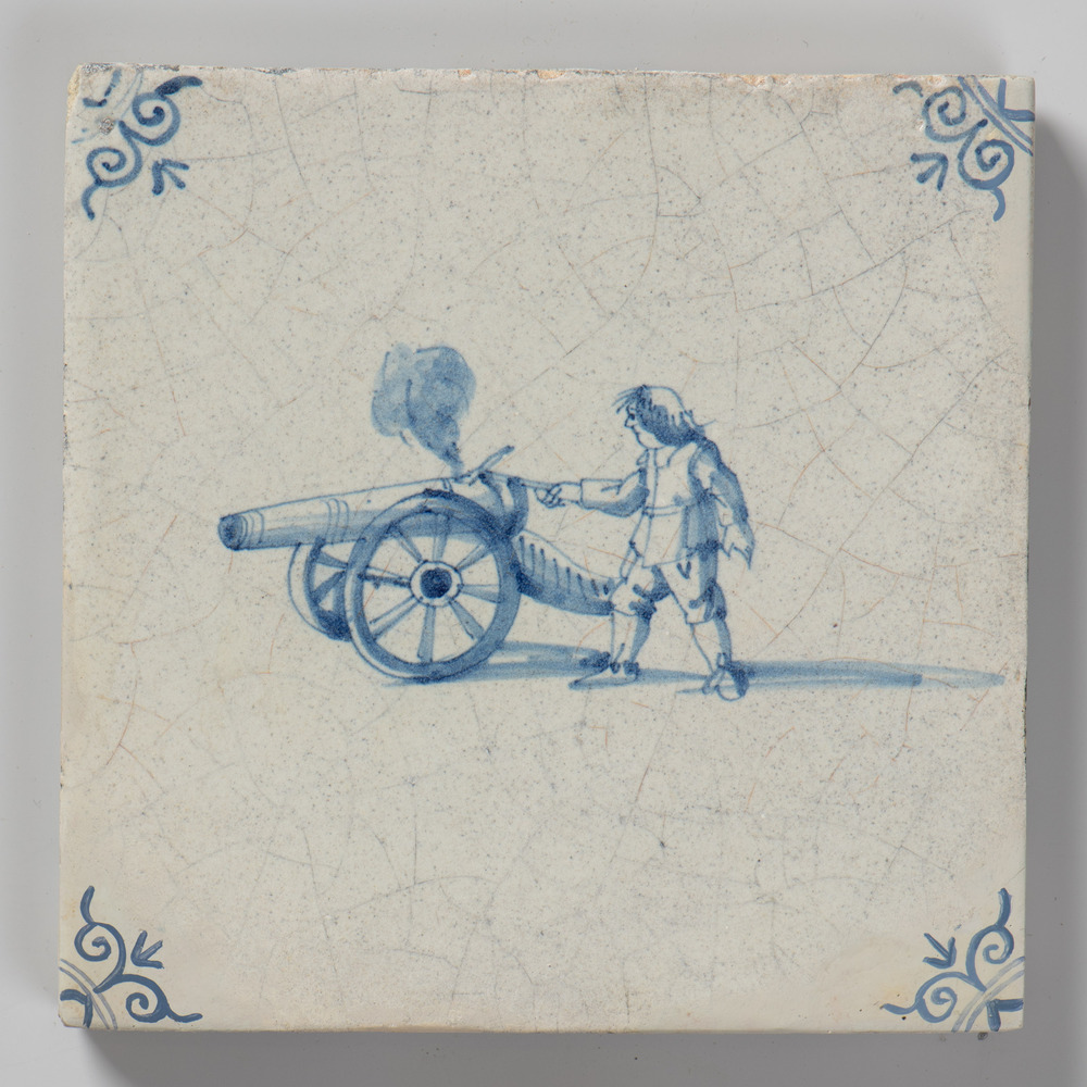 tegel van aardewerk met tinglazuur, voorstellende: k...