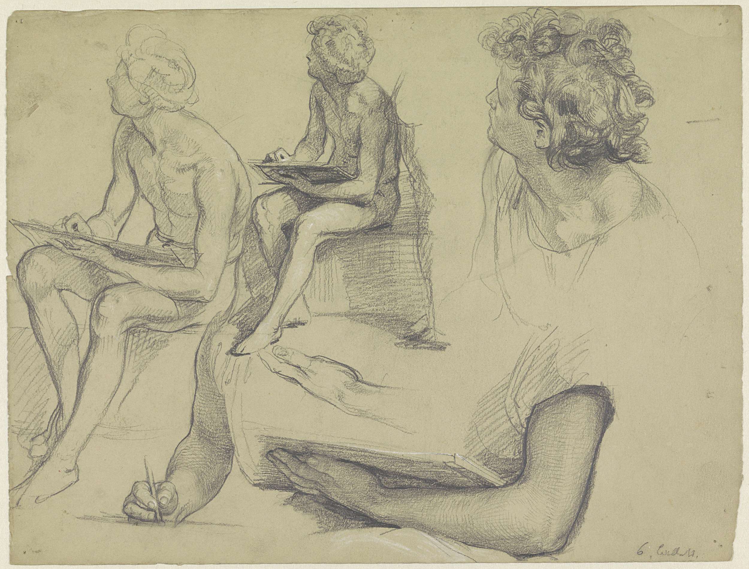 Studies van een zittende, tekenende jongen