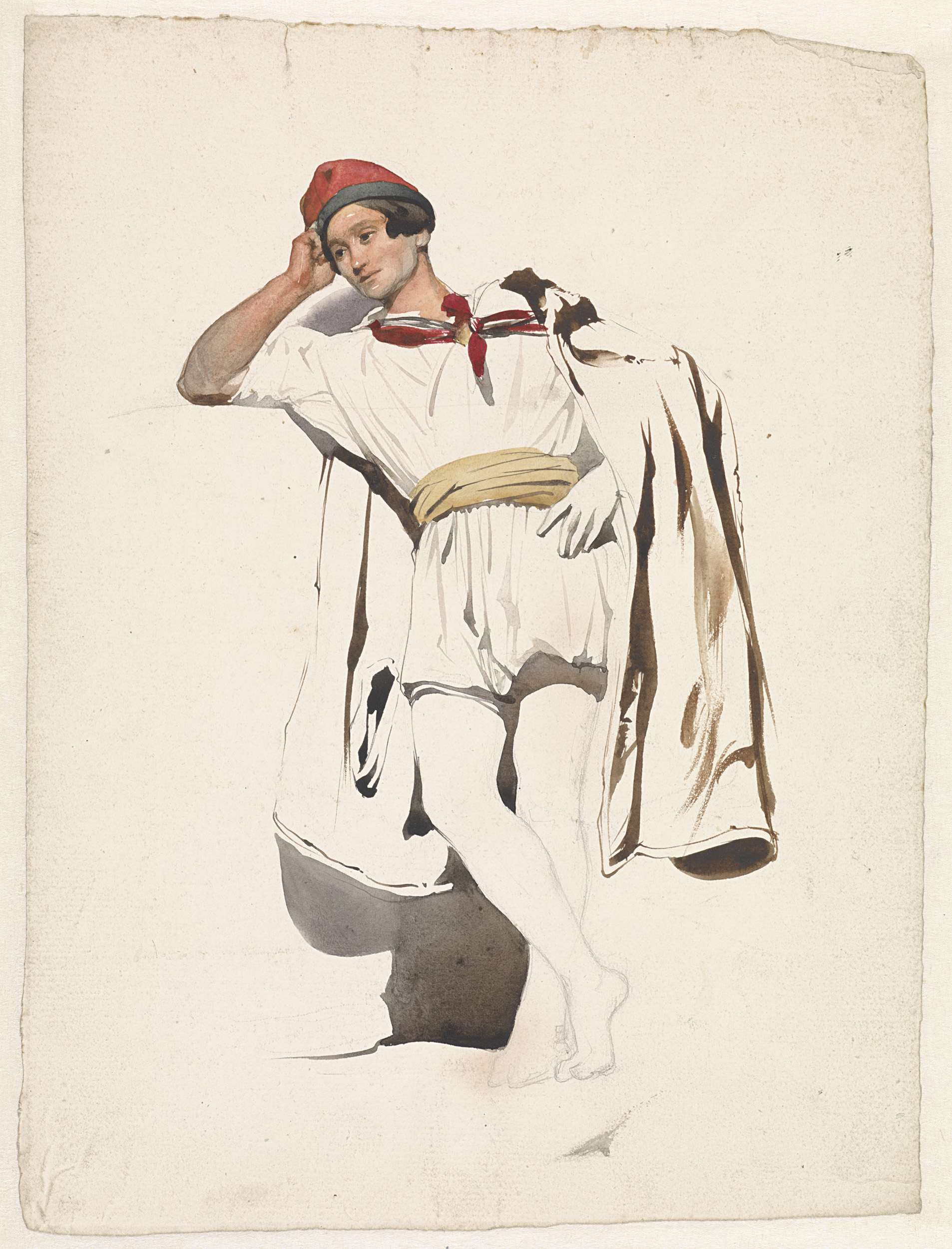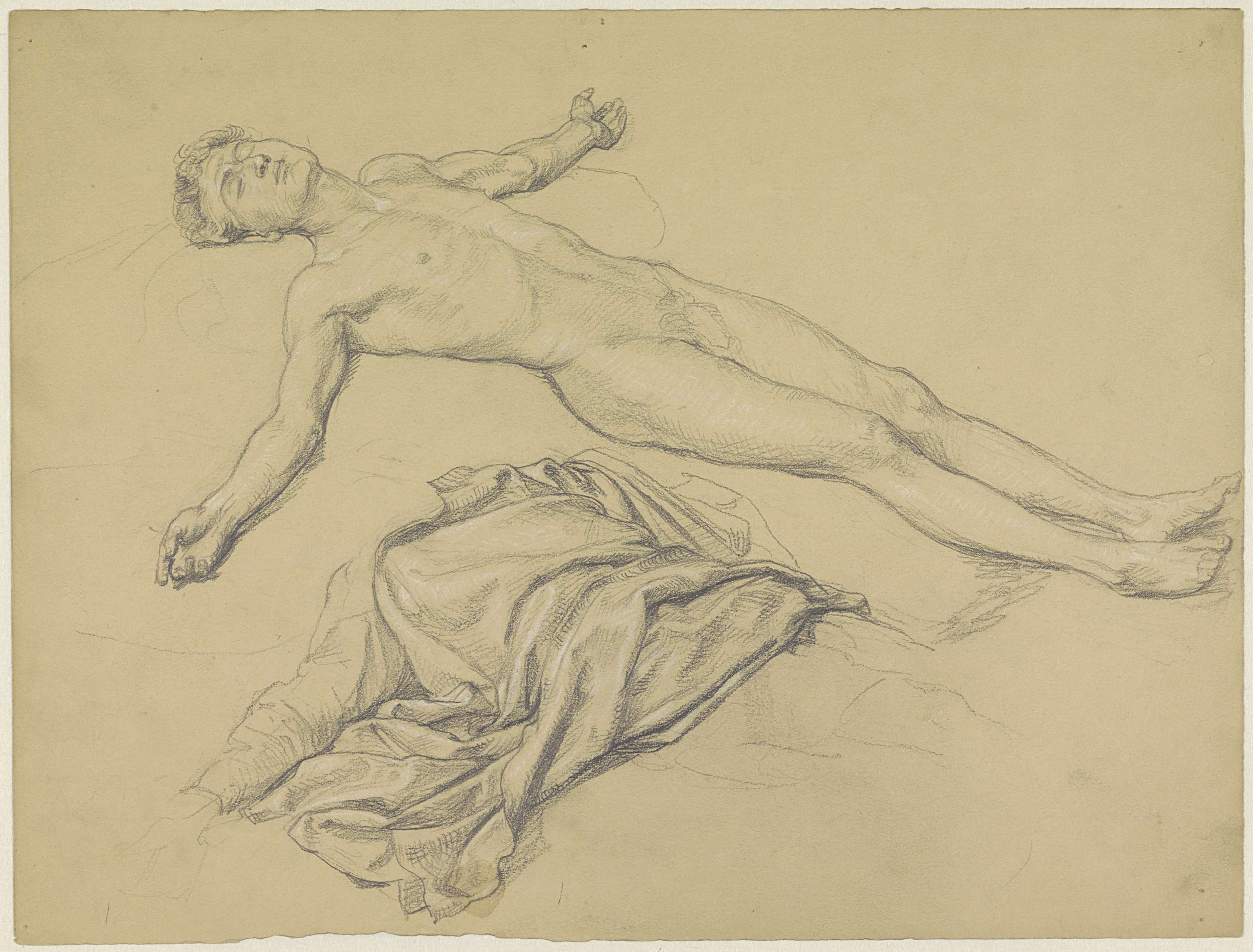 Studie van een liggende naakte man en draperie