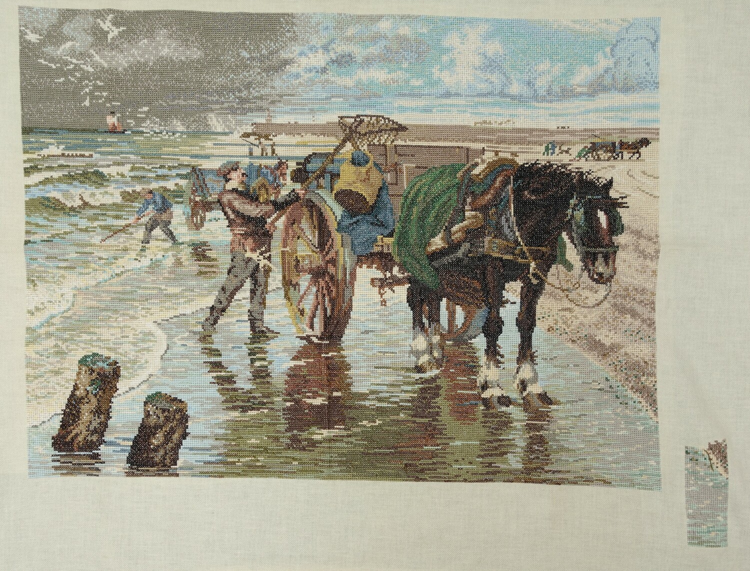 Factory woven cloth hand embroidered (cross stitch) (204)