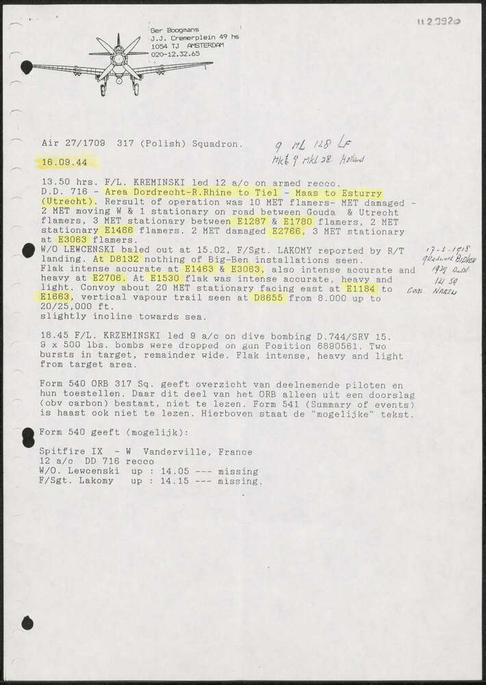 Hq IX Tr Carr Oomd APO 133 US Army, 17 september 1944