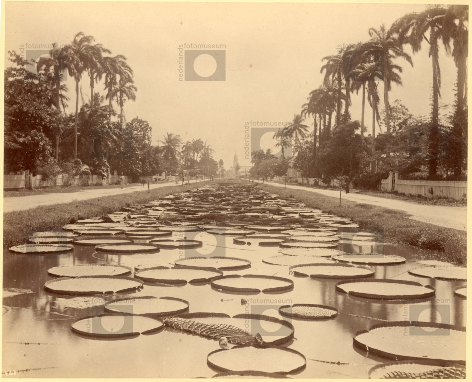 Victoria Regia waterlelies in kanaal langs Camp Stre...