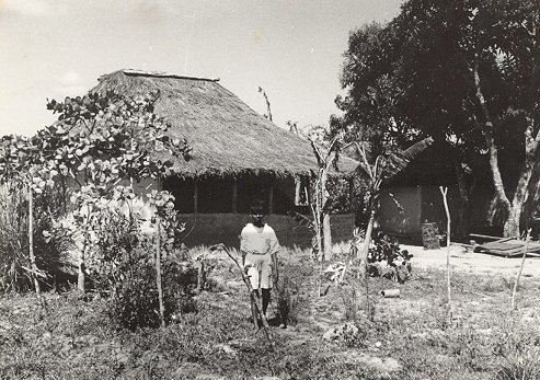Creolen rondom houten vijzel met stamper, Paramaribo...