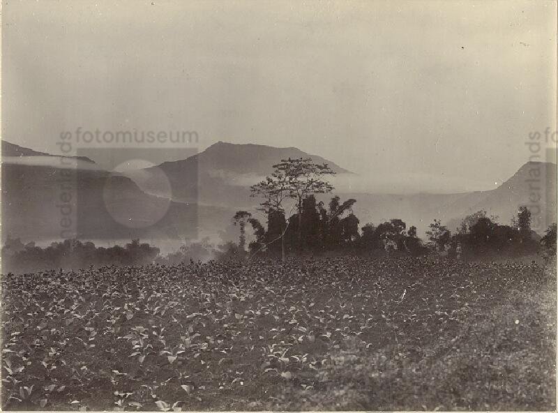 Berglandschap met katoenaanplant (?), op Bali, Indon...