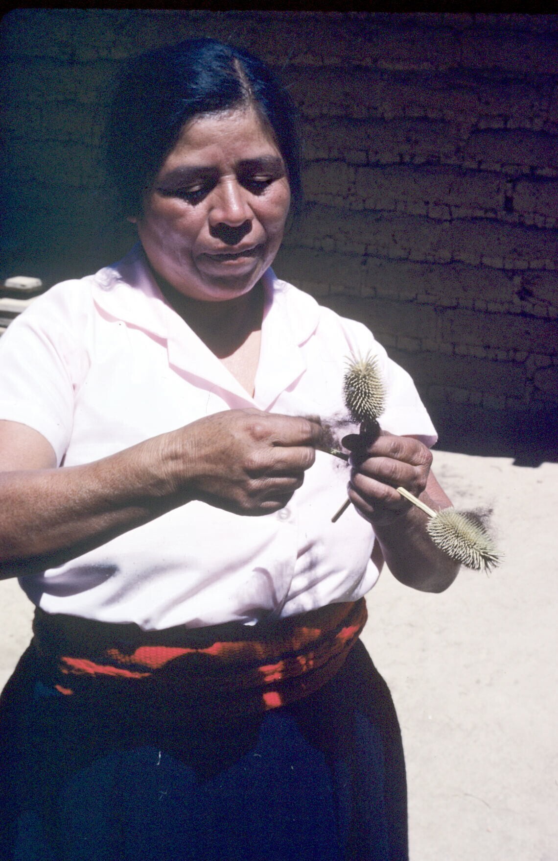 Cihuatzin (Doña) Loreto Jarriza, wol spinnend