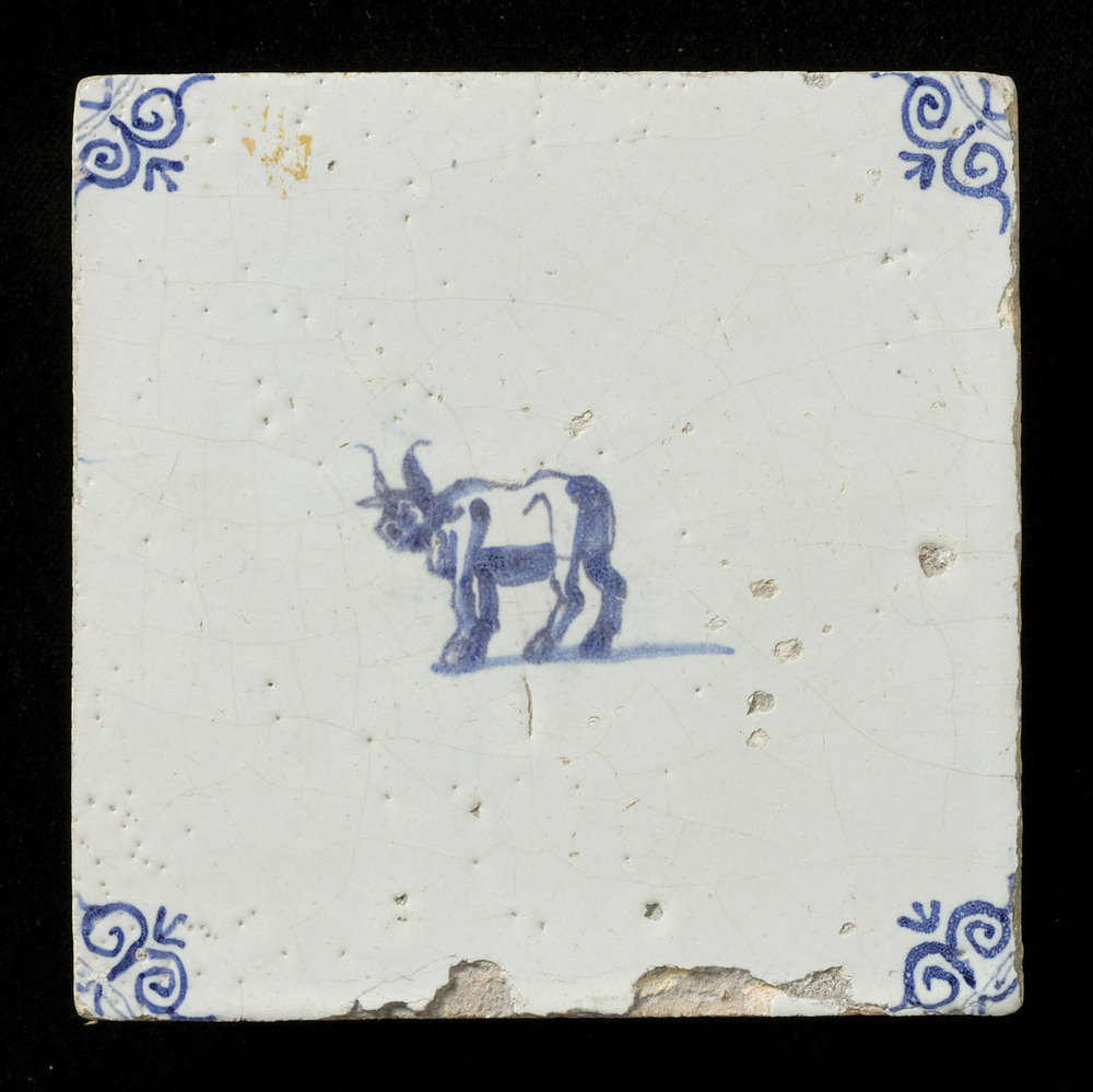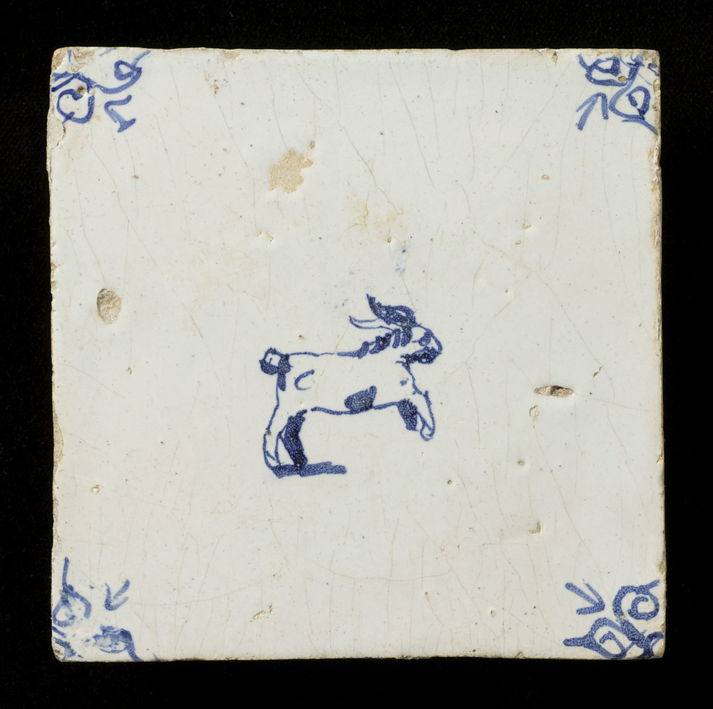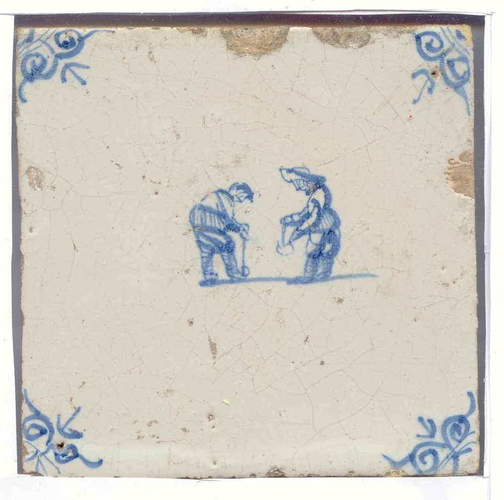 tegel van aardewerk met tinglazuur, voorstellende: h...