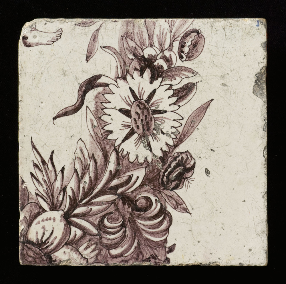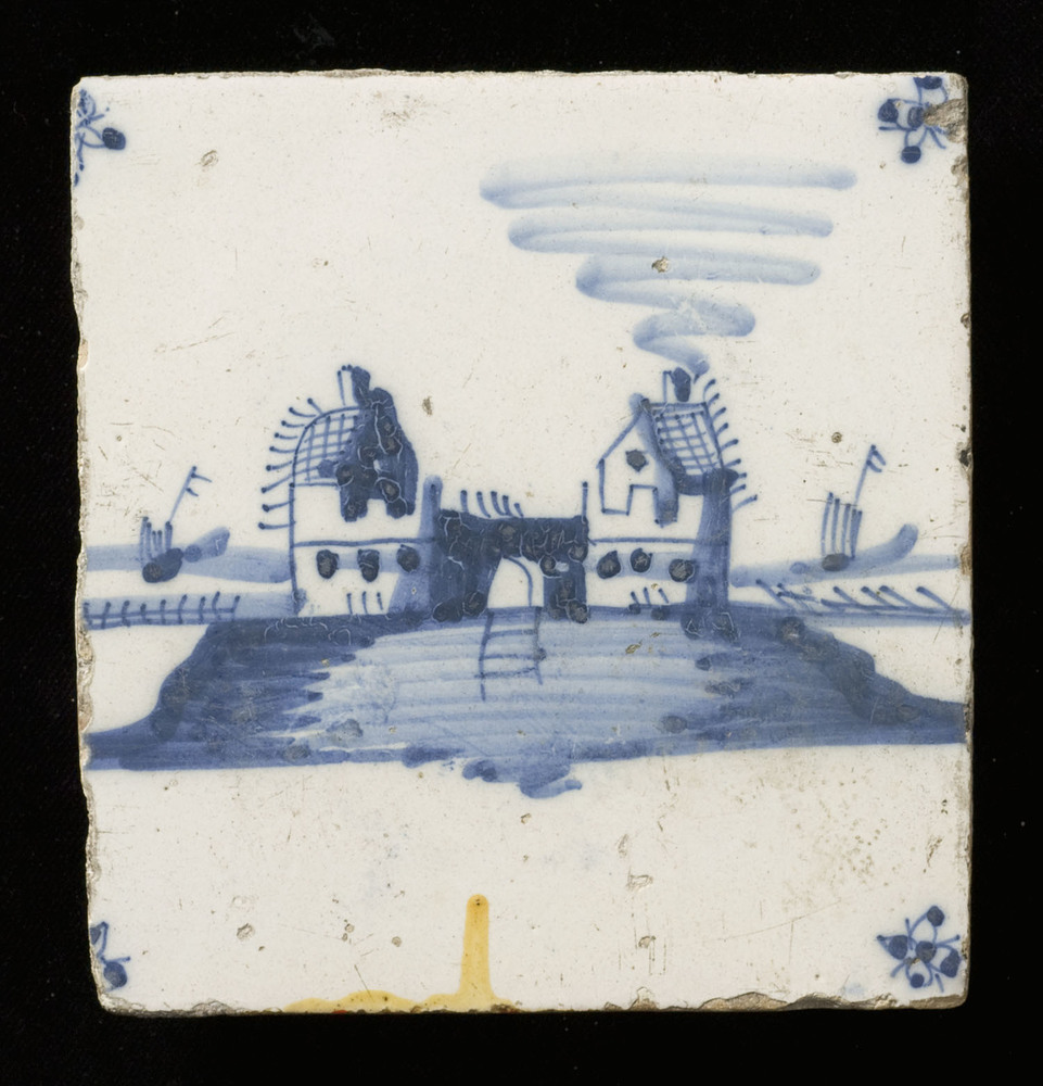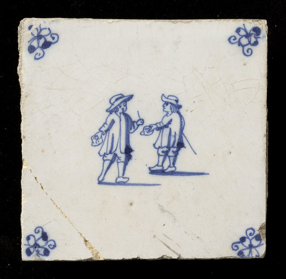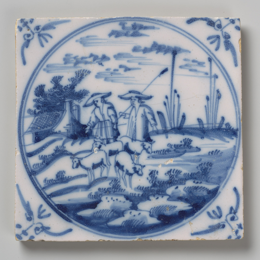 tegel van aardewerk met tinglazuur, voorstellende: h...