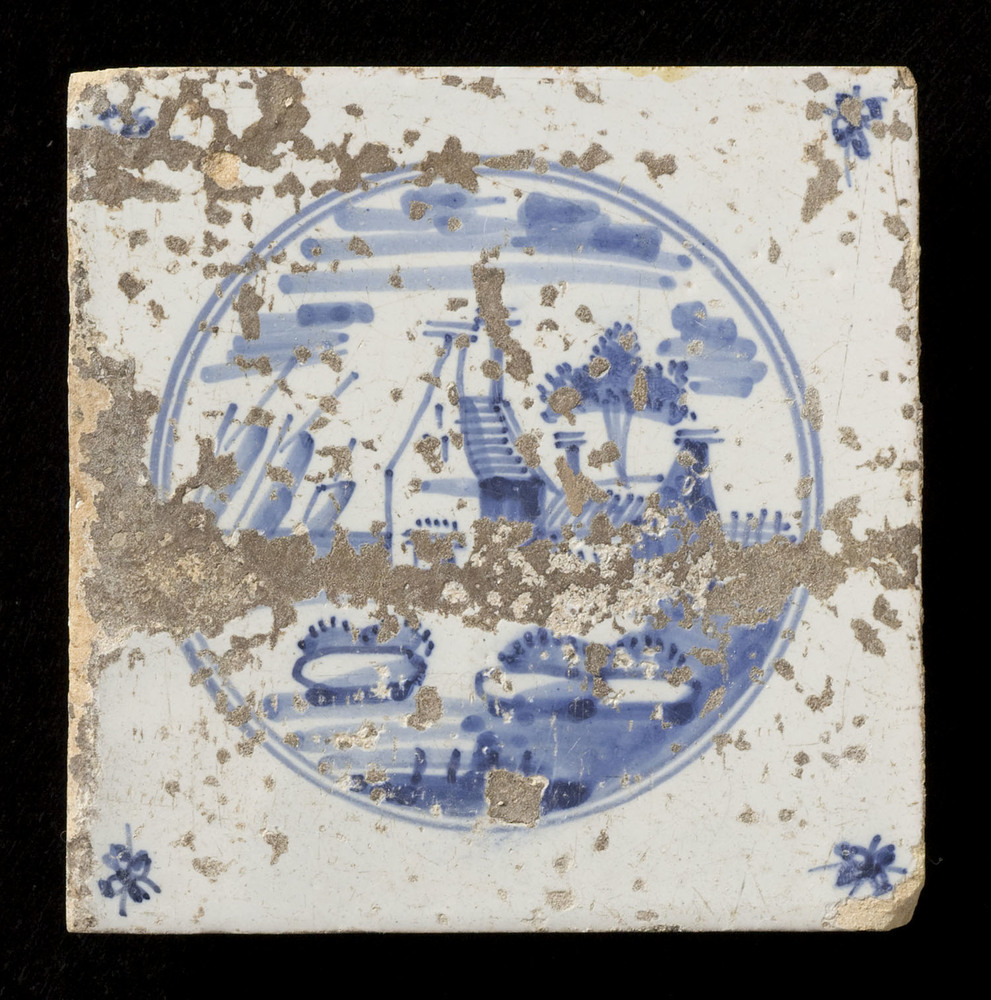Tegel van keramiek, tinglazuur, voorstellende een mi...