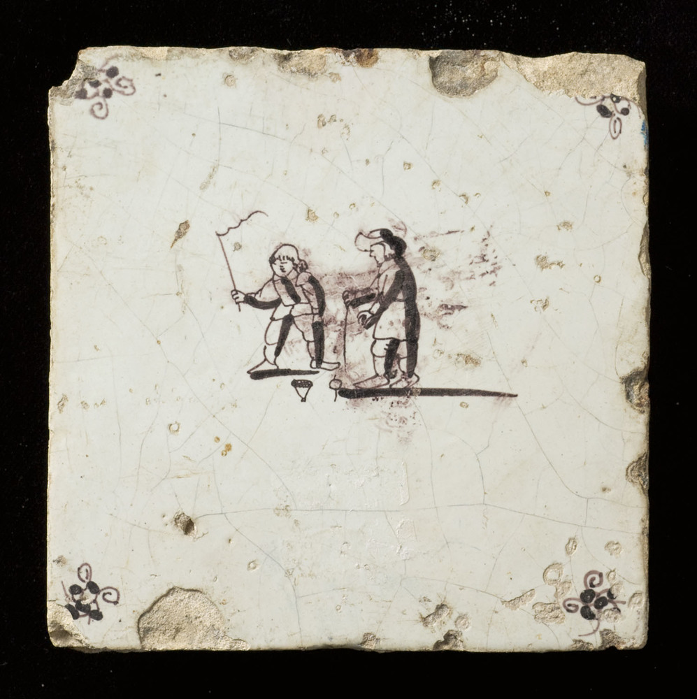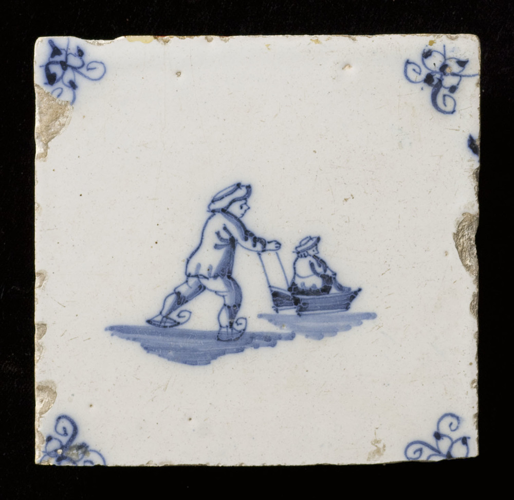 Tegel van keramiek, tinglazuur, voorstellende kinder...