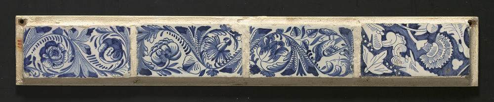 Randtegel in tinglazuur, voorstellende bloemrandje, ...
