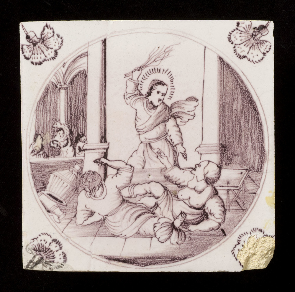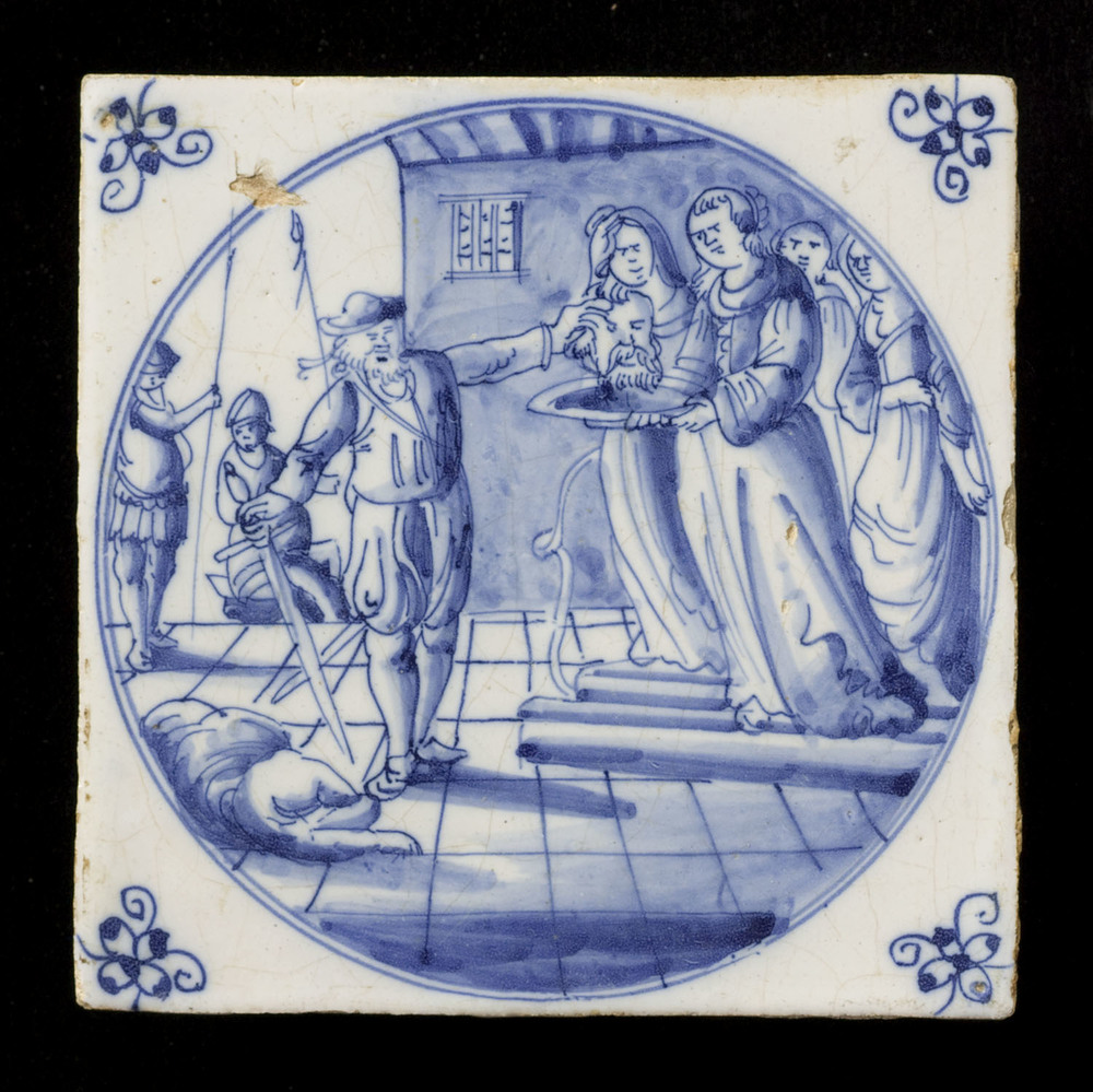 Tegel in tinglazuur, voorstellende marc.6:28, Johann...