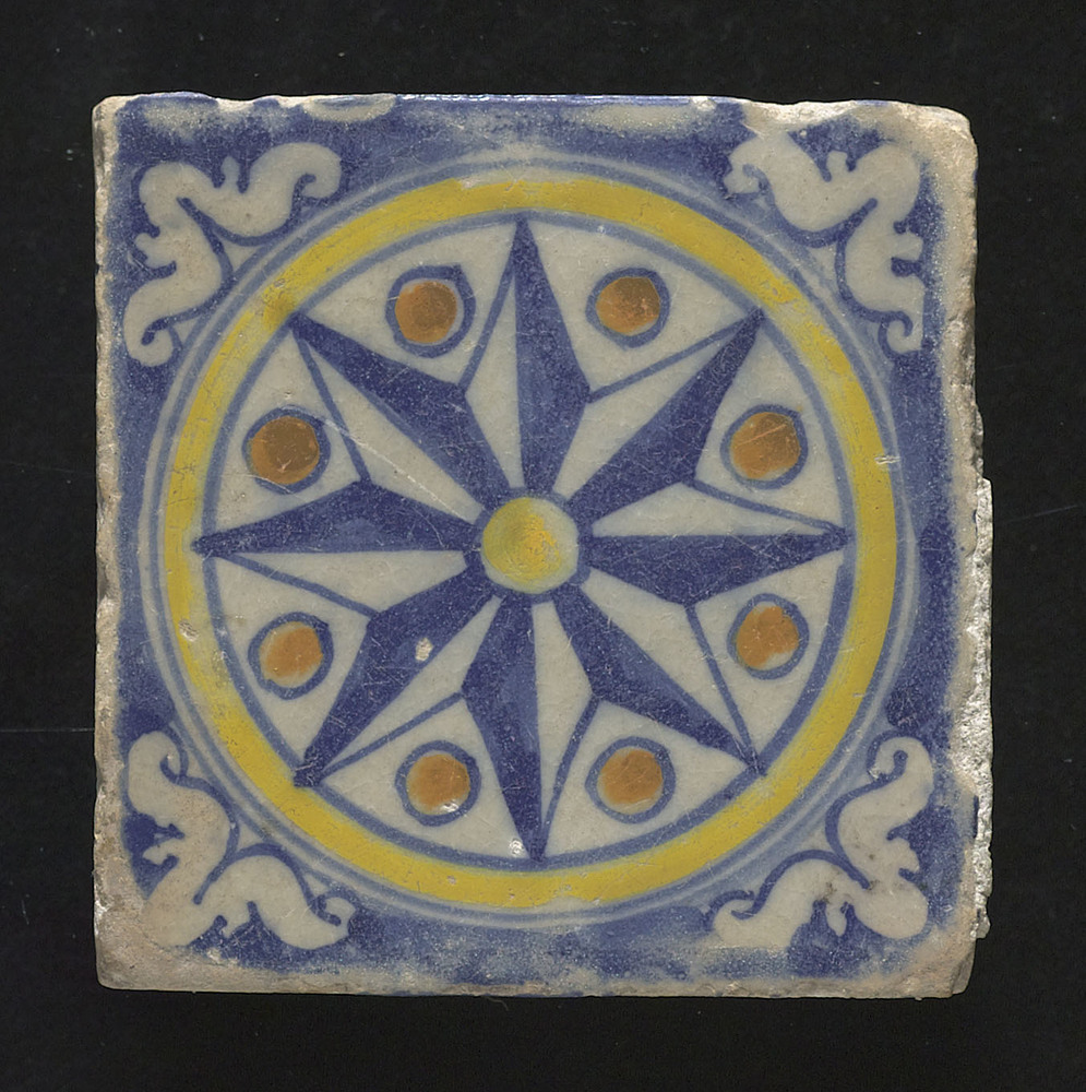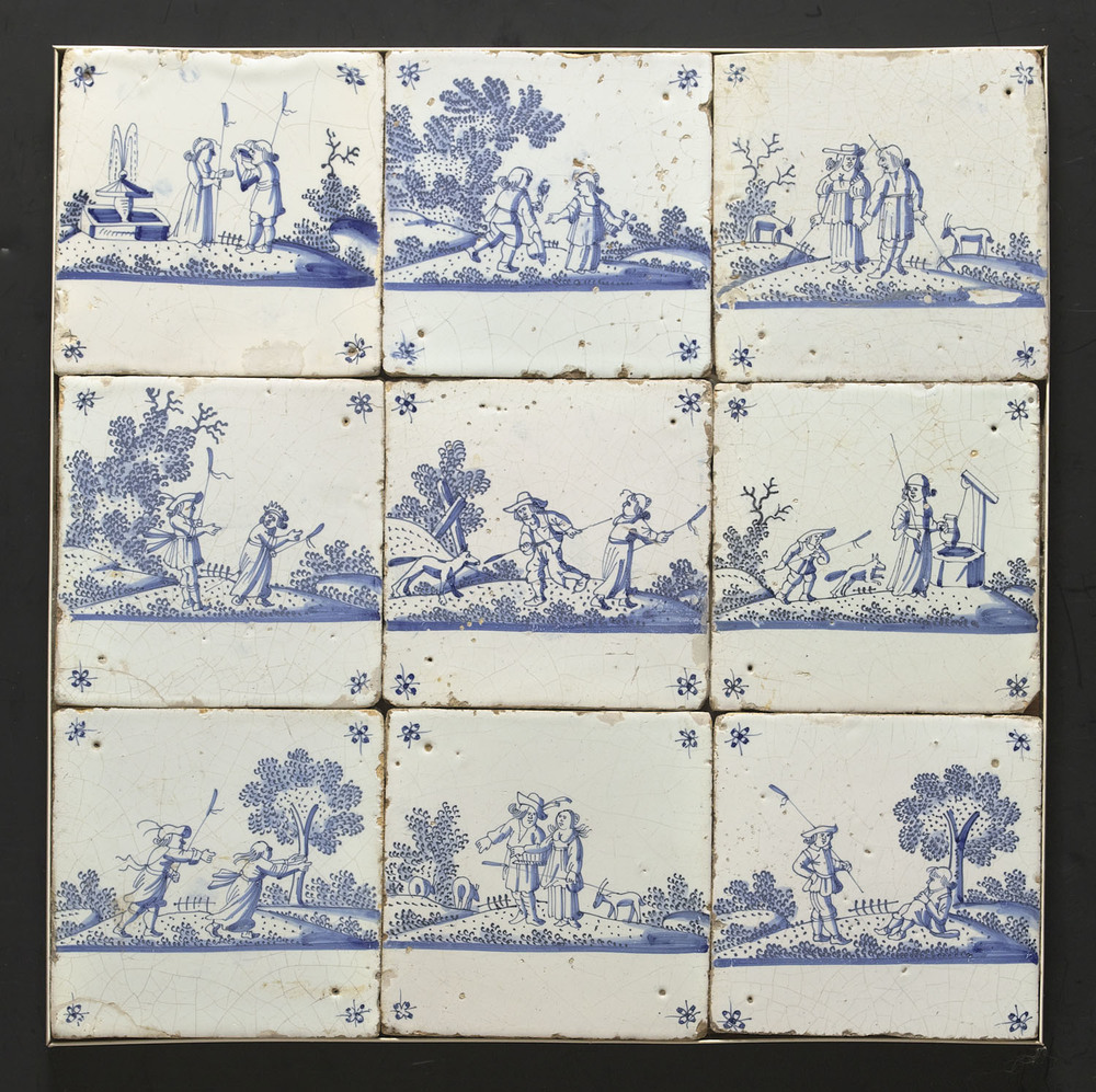 Tableautegel van keramiek, tinglazuur, voorstellende...