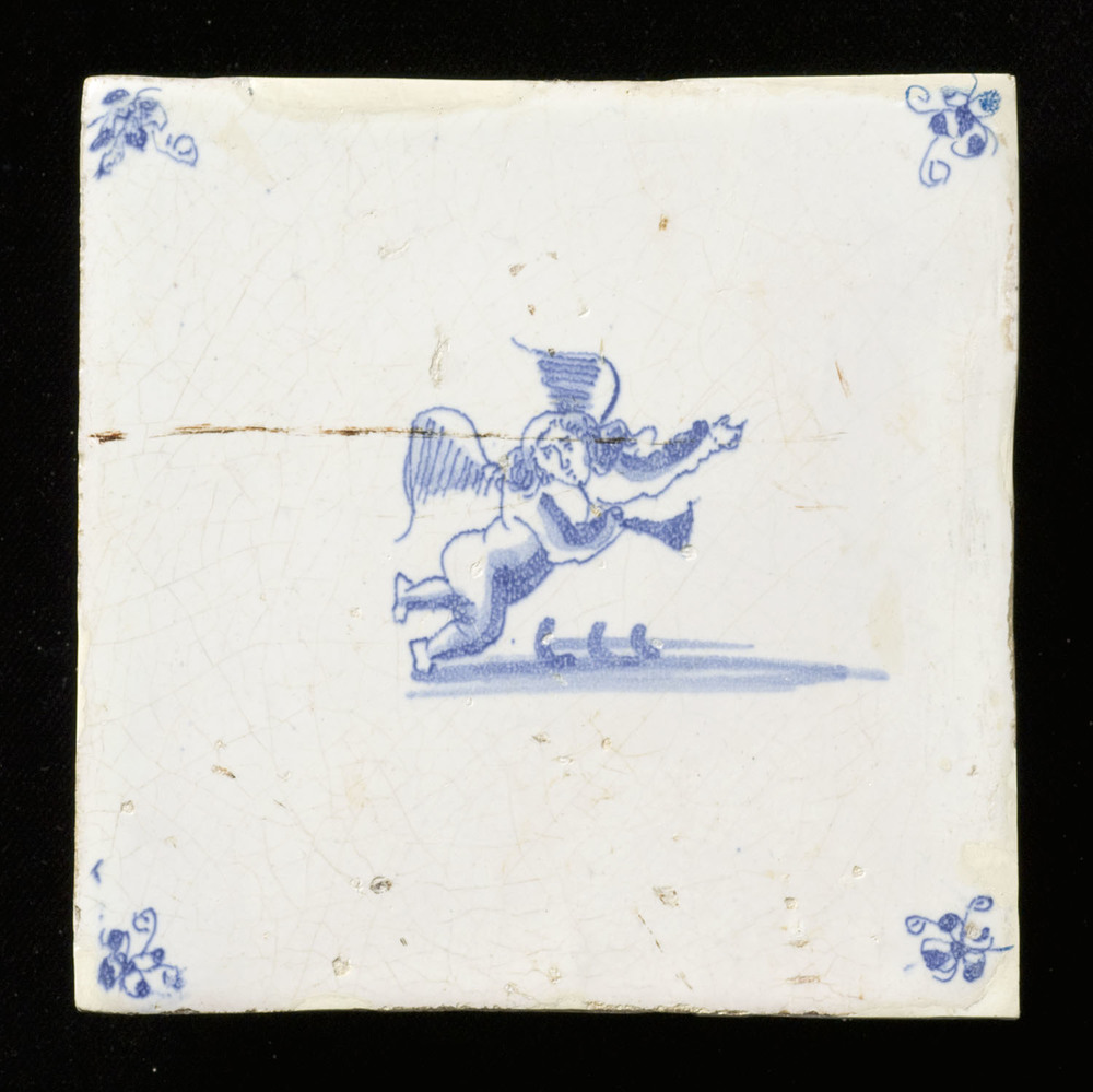 Tegel in tinglazuur, voorstellende amor, ca. 1700-1750